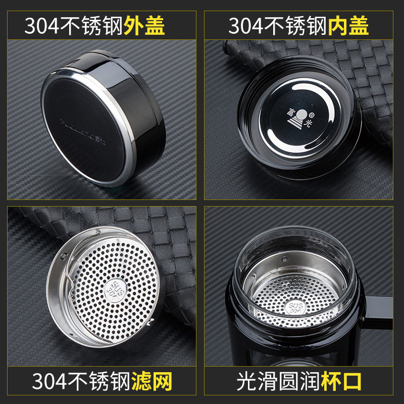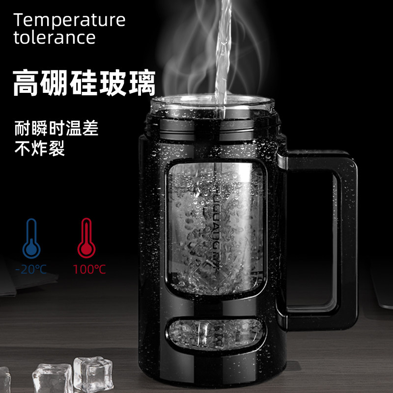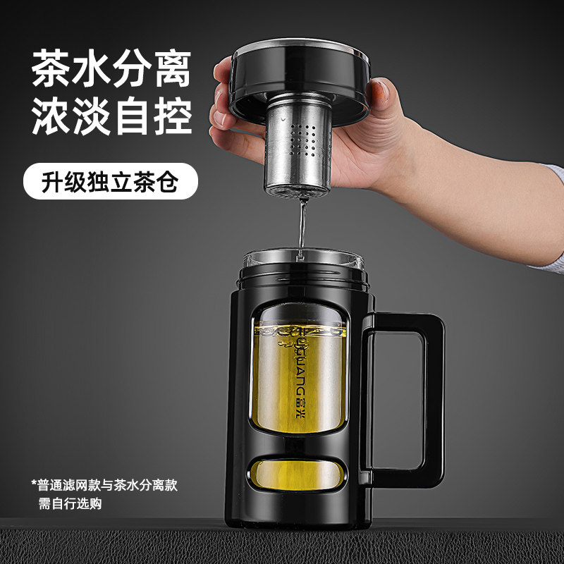 富光玻璃杯男款家用大容量办公室水杯便携带把手茶水分离泡茶杯子