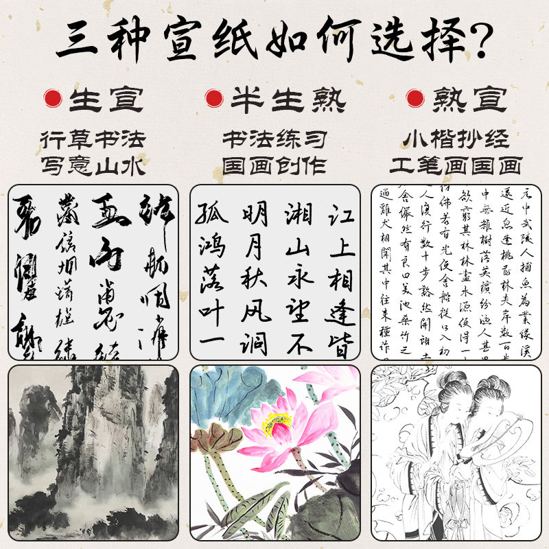 8K国画宣纸书法练字专用4K生宣A4熟宣A3半生半熟加厚画画美术作品纸空白幼儿园小学生初中生毛笔字练习工笔画