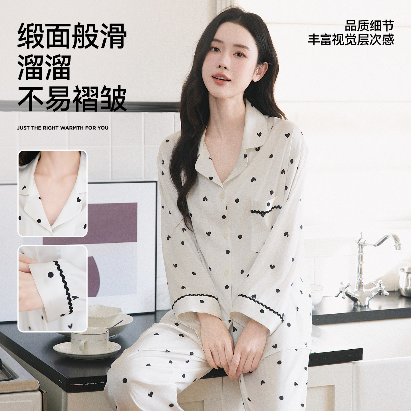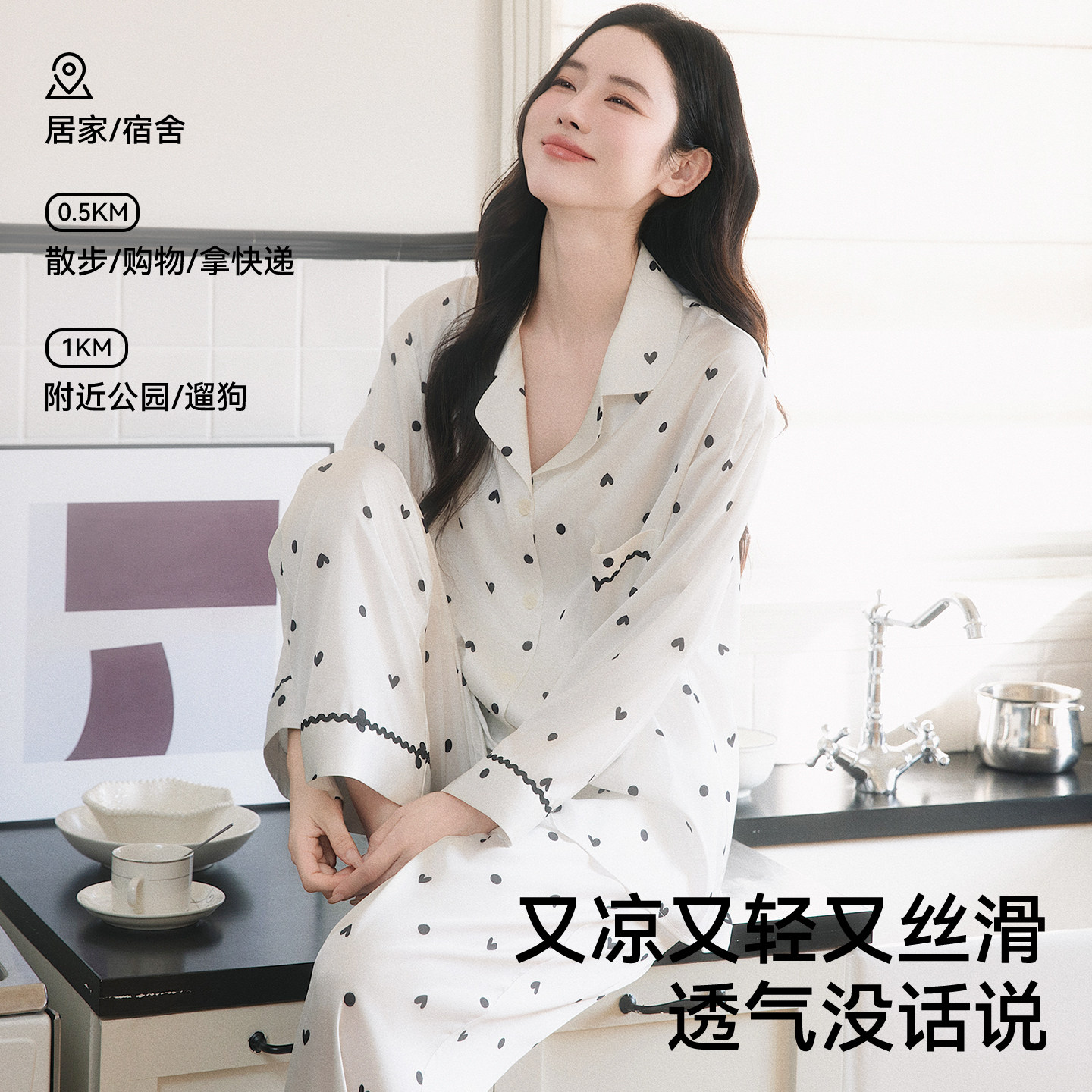 猫人冰丝睡衣女款2026新款春夏季长袖仿真丝绸凉感外穿高档家居服