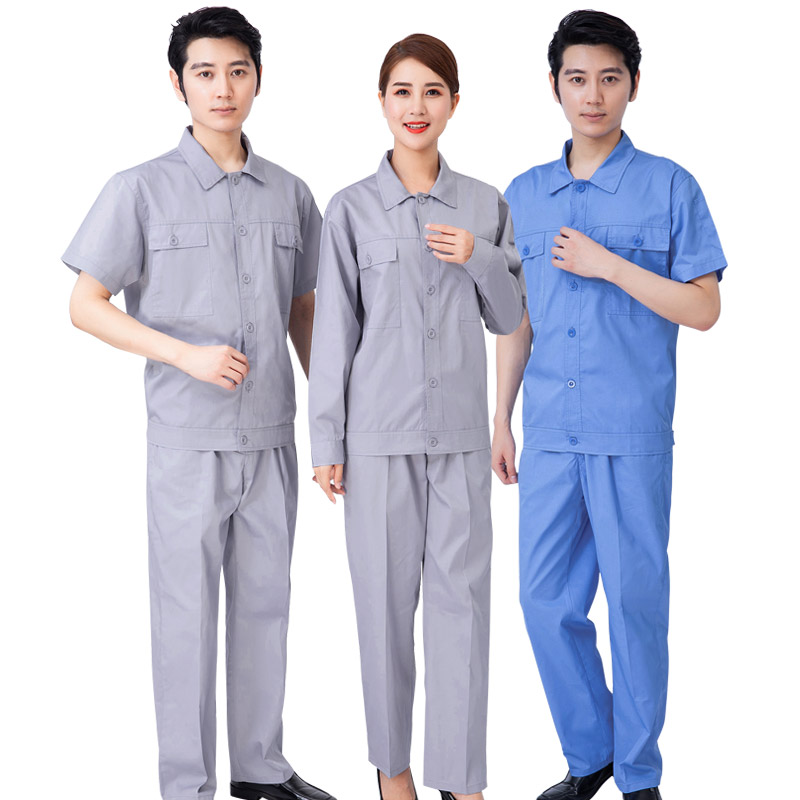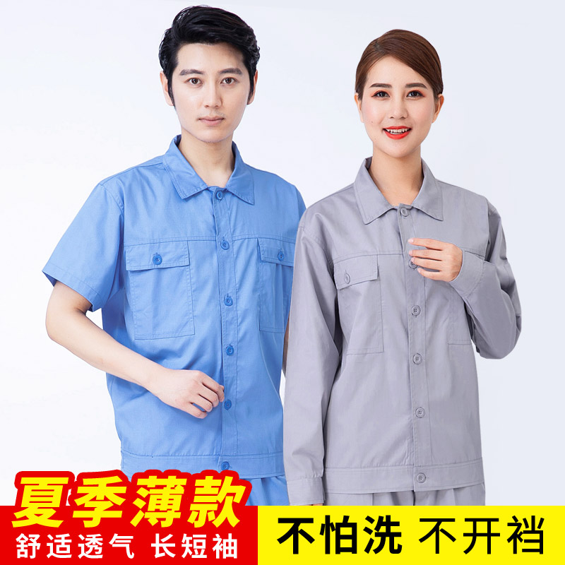 夏季薄款长短袖工作服套装 男士女劳保服上衣 工装厂服汽修电焊服