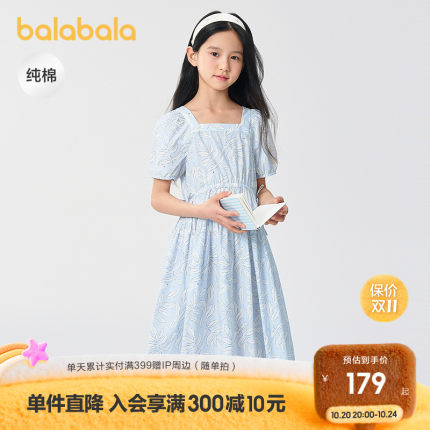 巴拉巴拉连衣裙女童纯棉印花裙子