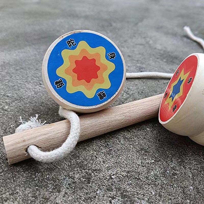 老式陀螺抽打儿童冰尜实木冰猴传统木质木制玩具健身打陀螺带绳子