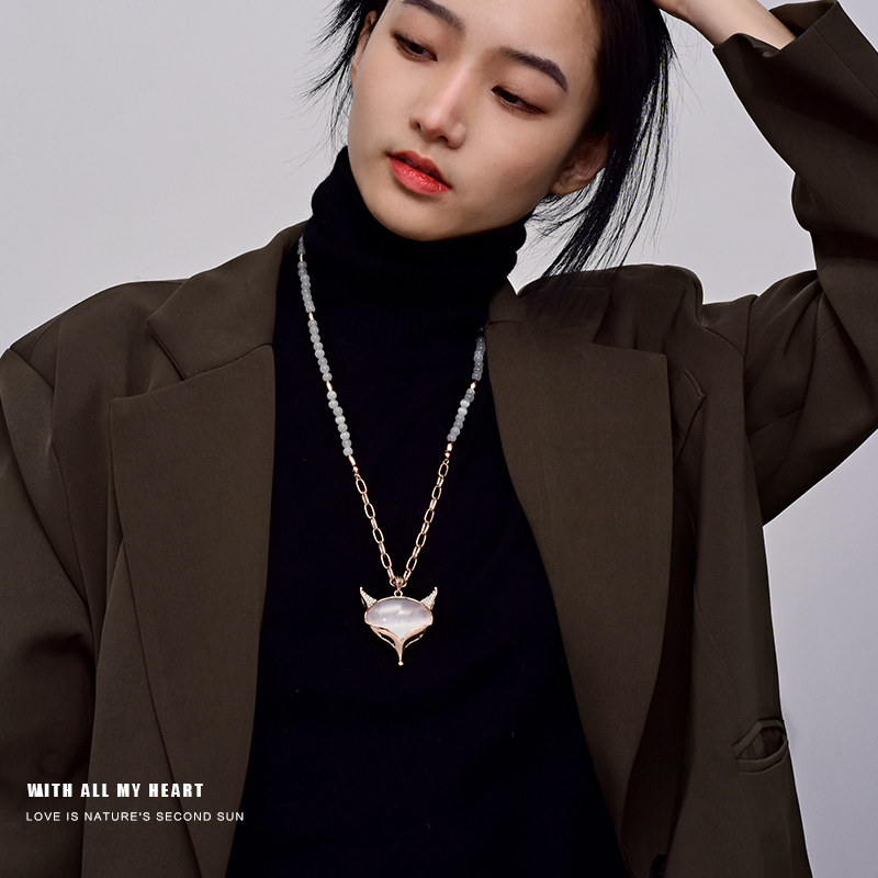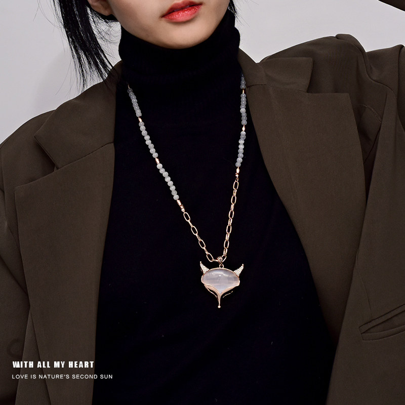 A夜明珠狐狸毛衣项链 女毛衣项链2022年新款挂饰 项链 女 百搭