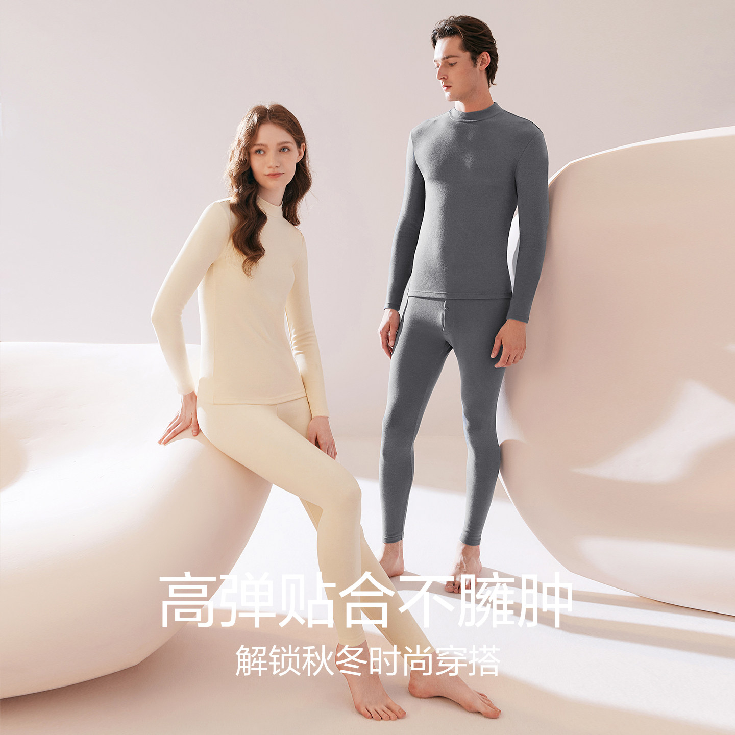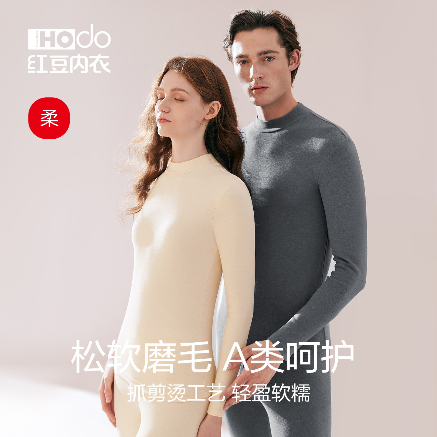 红豆绒棉花糖H3男女士高领内衣色纺磨毛A类打底秋衣秋裤保暖套装