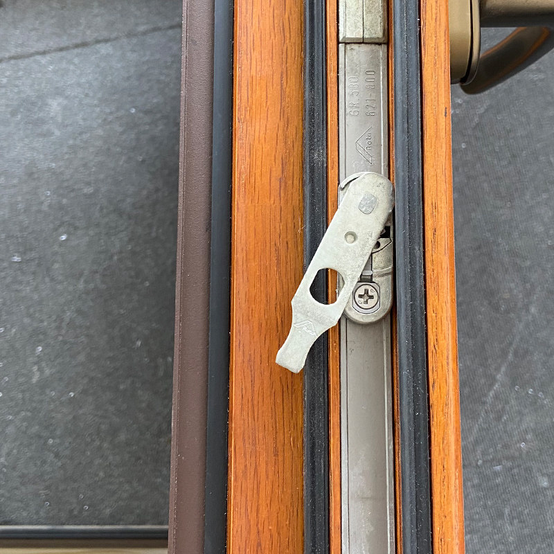 诺托五金ROTO铝包木塑钢平开上悬窗保险铝木复合内开内倒防误器