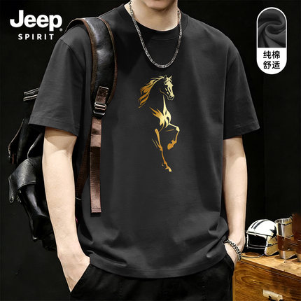 Jeep吉普马年纯棉短袖t恤男2026春季黑色高级感重磅宽松百搭半袖