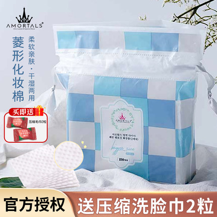 平价尔木萄菱形双面化妆棉卸妆棉眼唇脸部干湿敷两用不掉絮 150片
