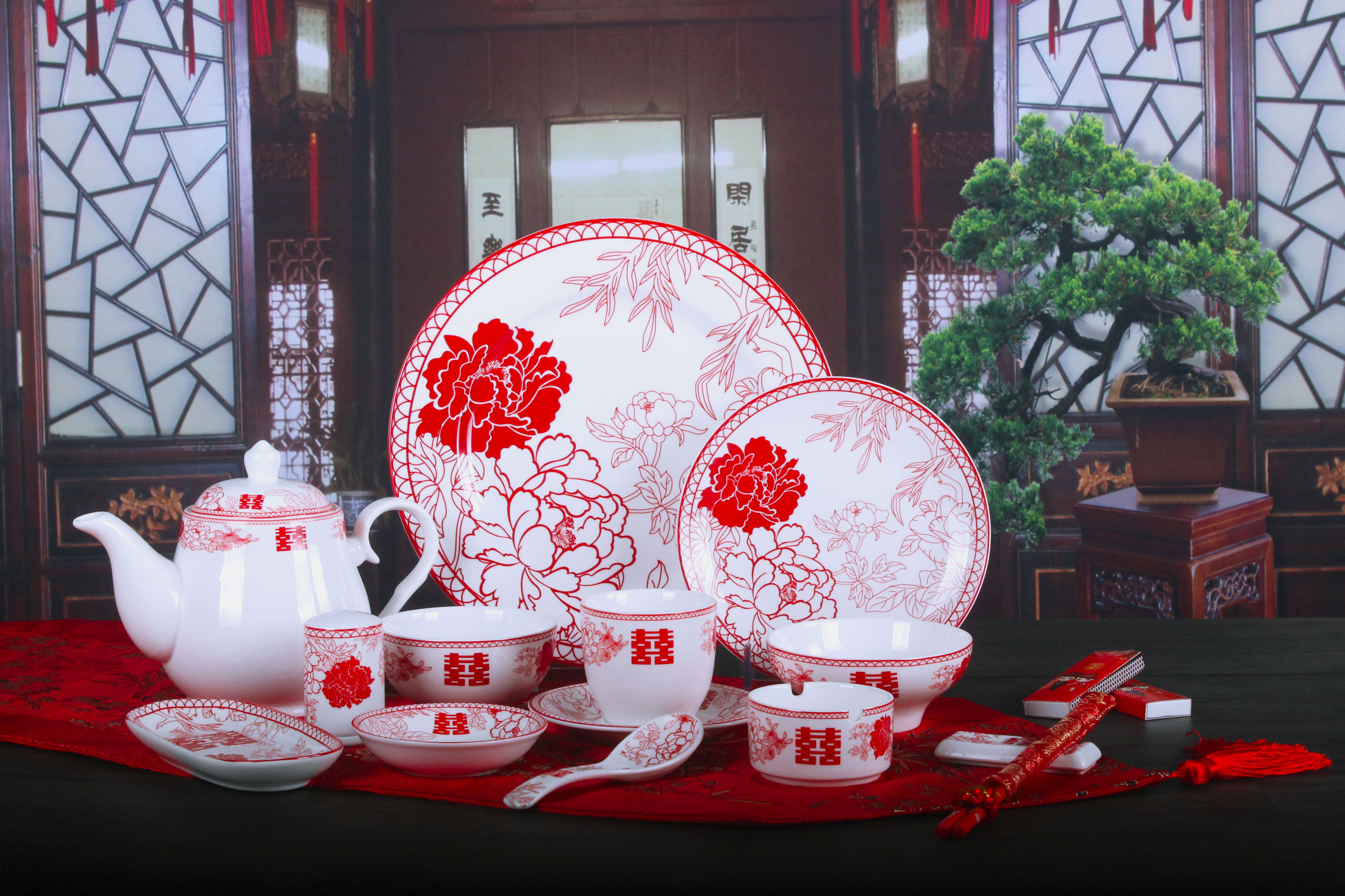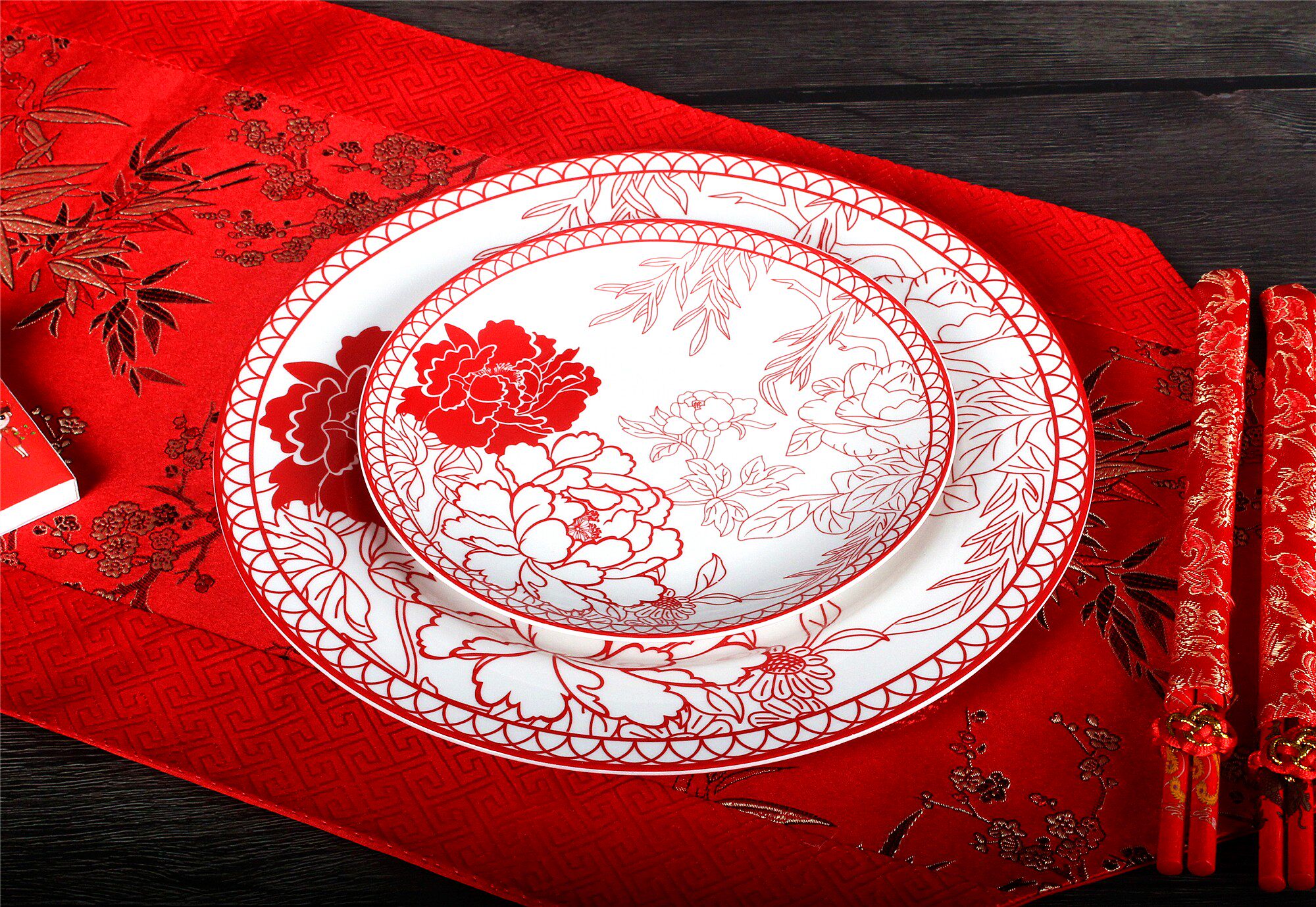 中国风陶瓷餐具结婚餐具套装酒店饭店喜宴专用瓷器家用婚庆中式碗