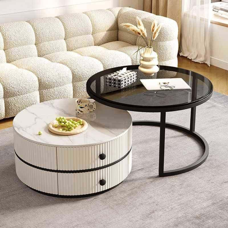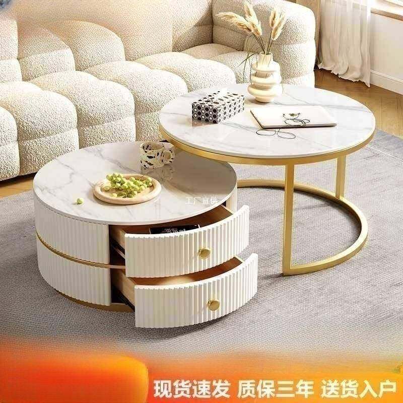 茶几桌厅客家用岩板小户型奢现代圆形F97MJ5TJ感组轻茶几奶油风简