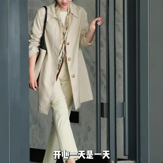CHILDEYAO秋季新款2025韩系气质宽松抗皱中长款风衣女翻领外套