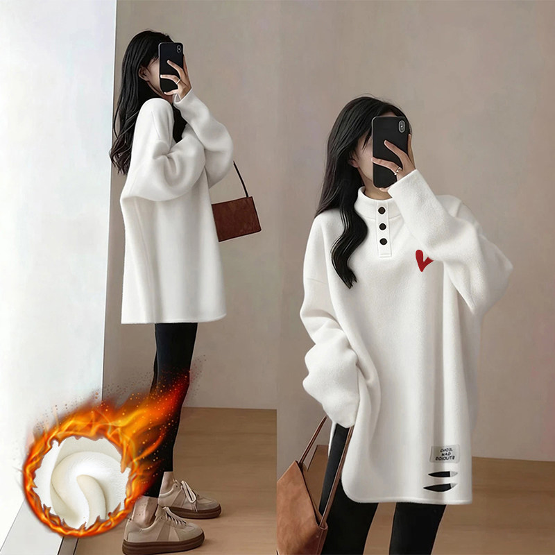 半高领德绒白色打底衫女内搭胖mm大码女装中长款上衣女遮屁股洋气