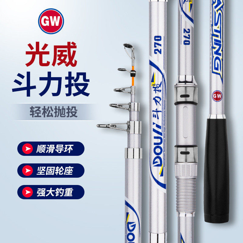 光威斗力投竿海竿套装超硬调钓鱼竿碳素超轻大物竿锚鱼银色远投竿