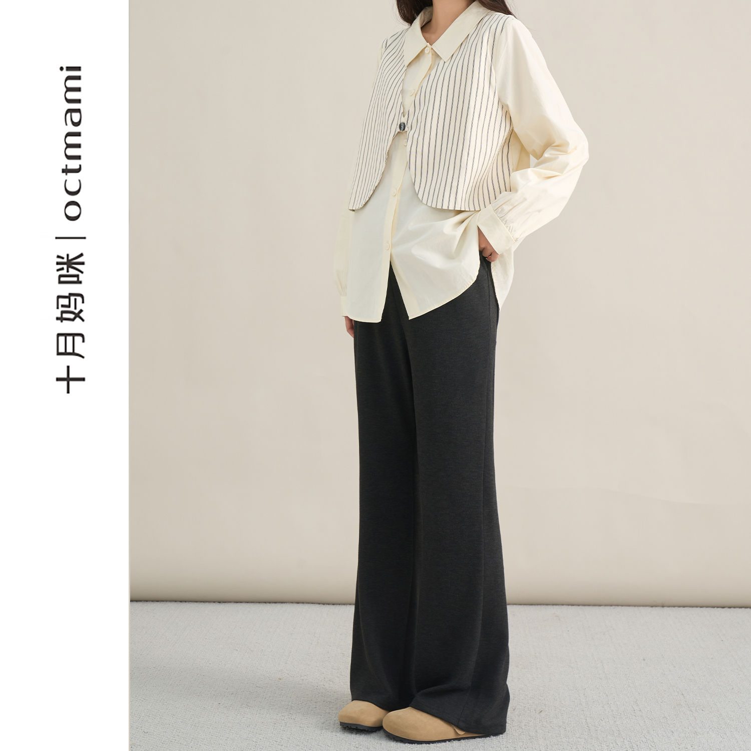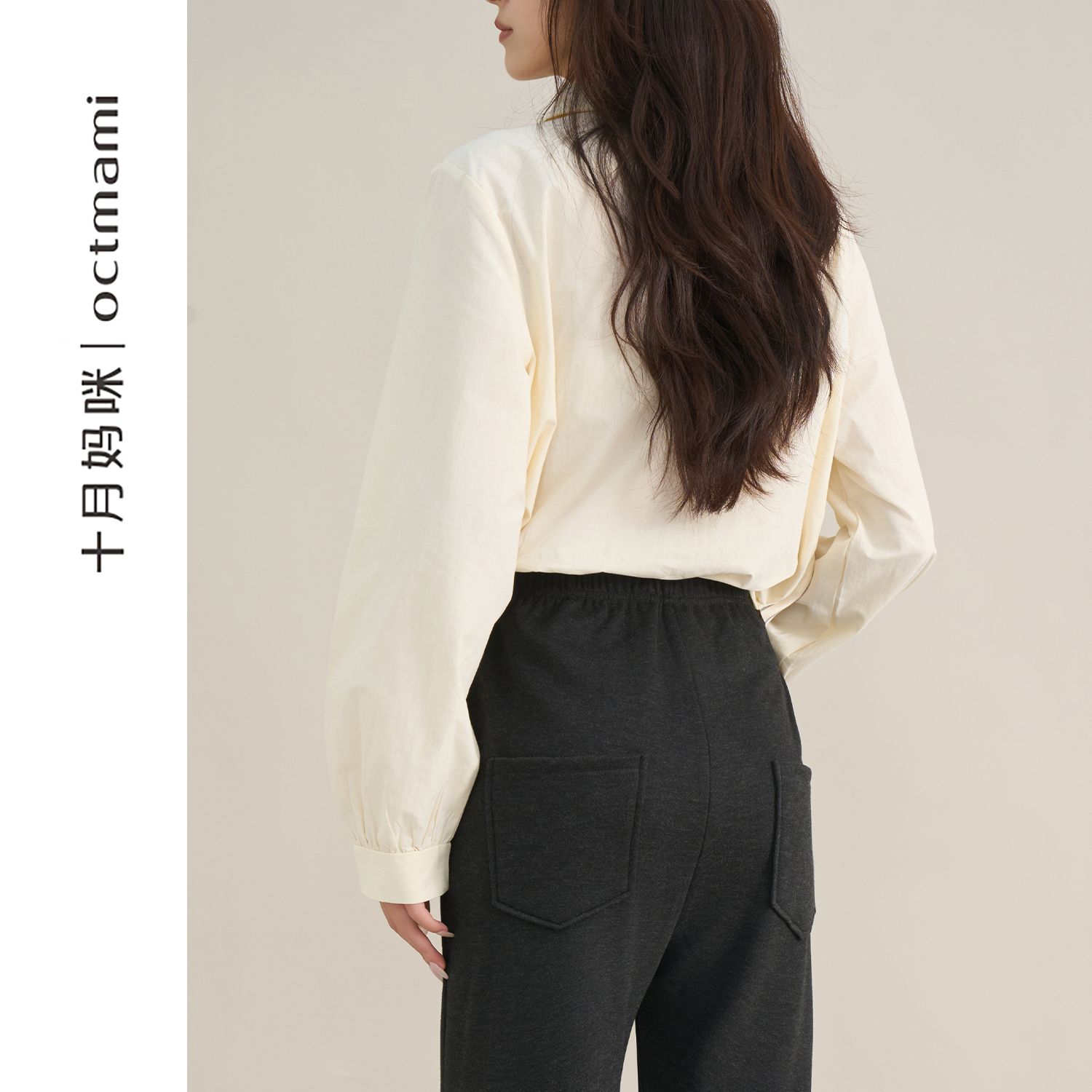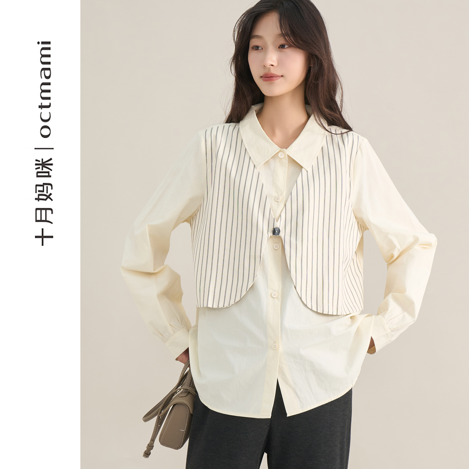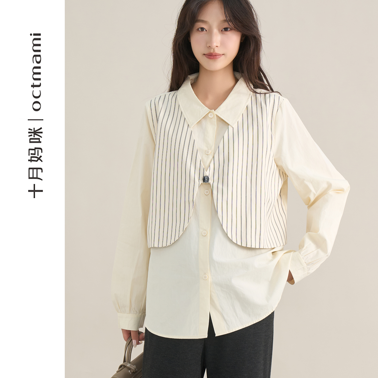 十月妈咪孕妇假两件衬衫2025新款秋季外穿宽松遮肚长袖上衣秋装