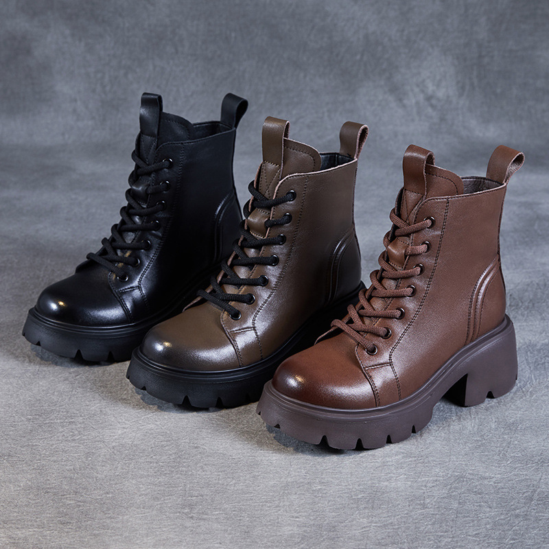 卡其色真皮高跟马丁靴女靴2025新款厚底春秋单靴冬季加绒短靴皮靴