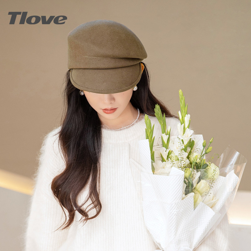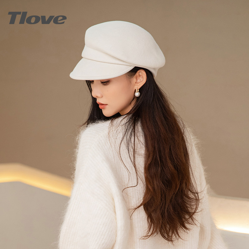 9523时尚洋气鸭舌帽女士秋冬天新款出街减龄羊毛毡礼帽百搭贝雷帽