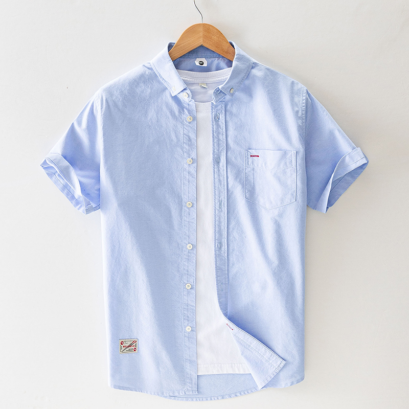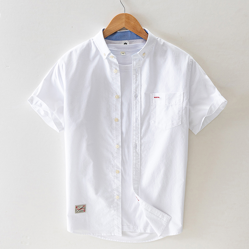 男士纯棉短袖衬衫夏季薄款上衣潮流百搭宽松休闲全棉衬衣半袖衣服