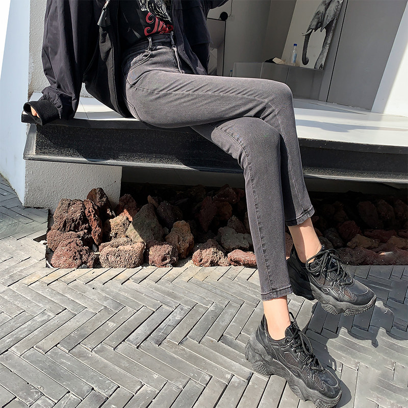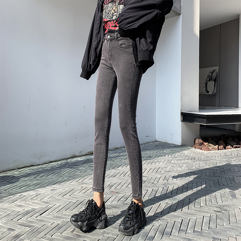 秋冬加绒白色牛仔小脚裤女娇小个子8分弹力紧N身打底外穿9分铅笔