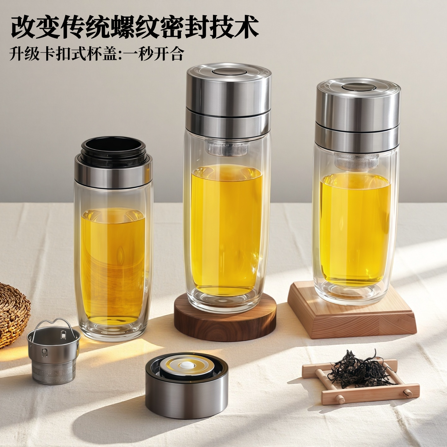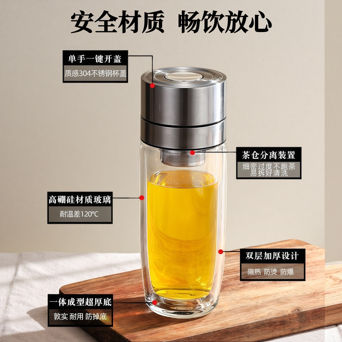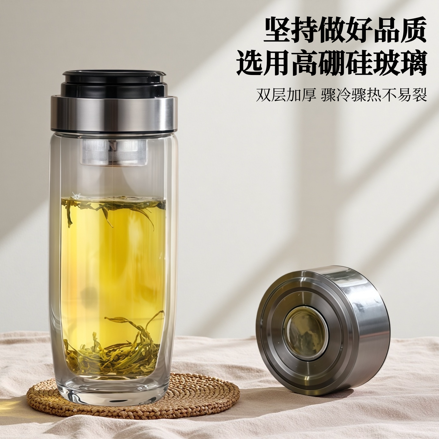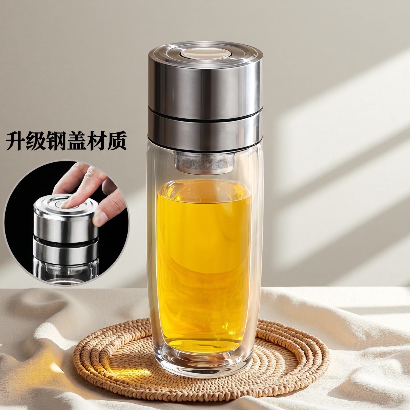 速开鹅蛋杯一键开盖双层玻璃杯加厚耐高温茶水分离泡茶杯车载水杯