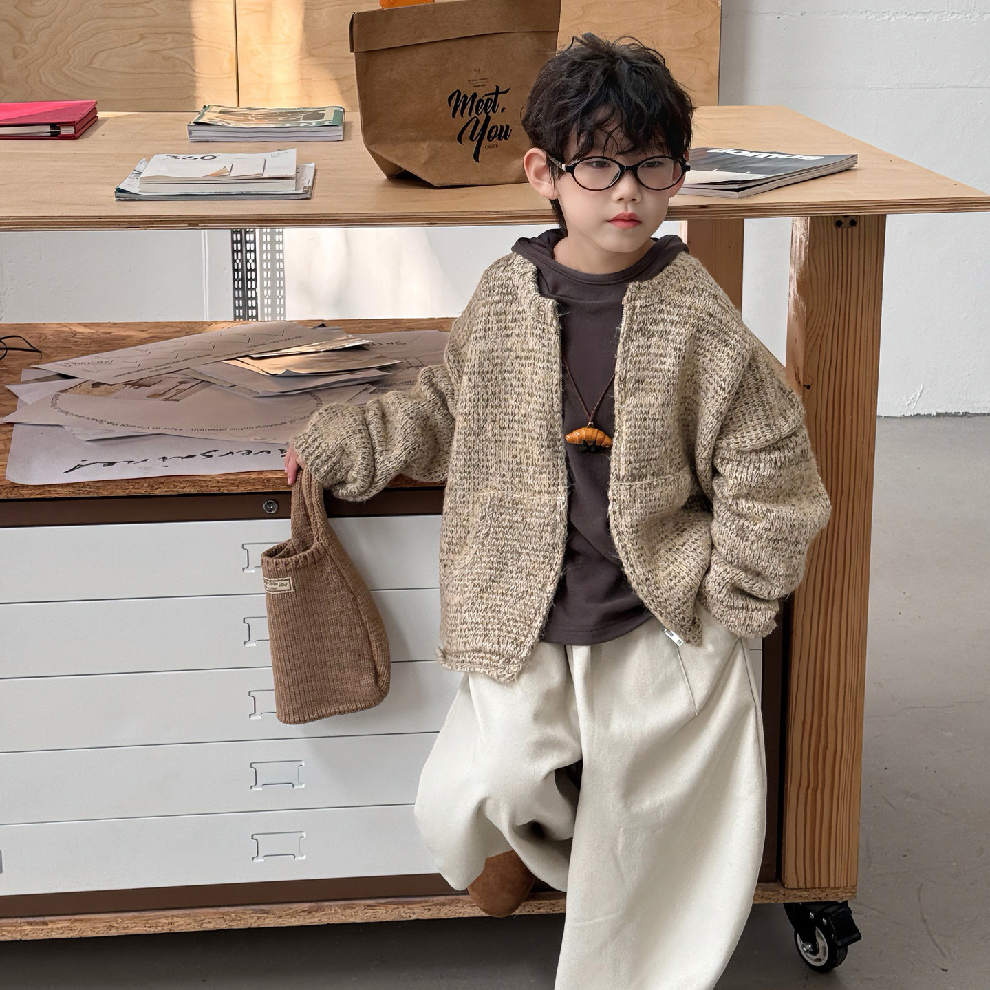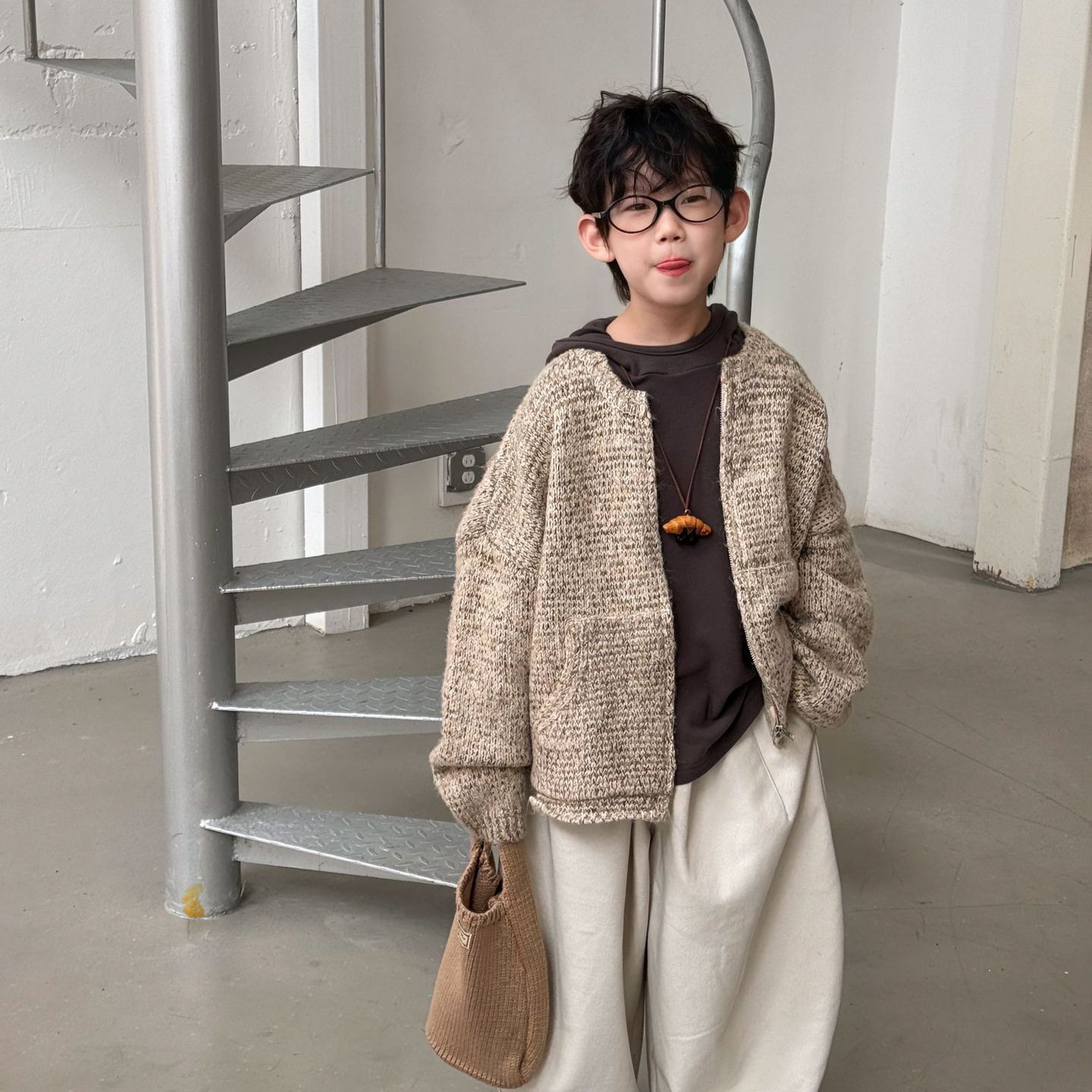 小杰家2025冬季新款韩版男童杂色圆领气质拉链加厚毛衣开衫上衣