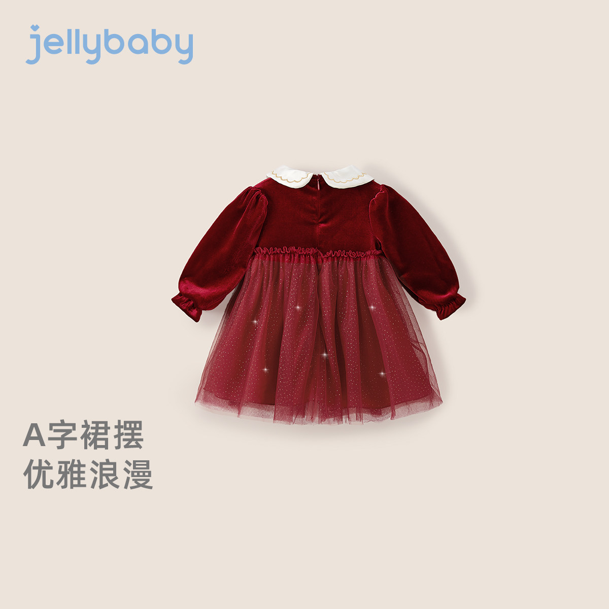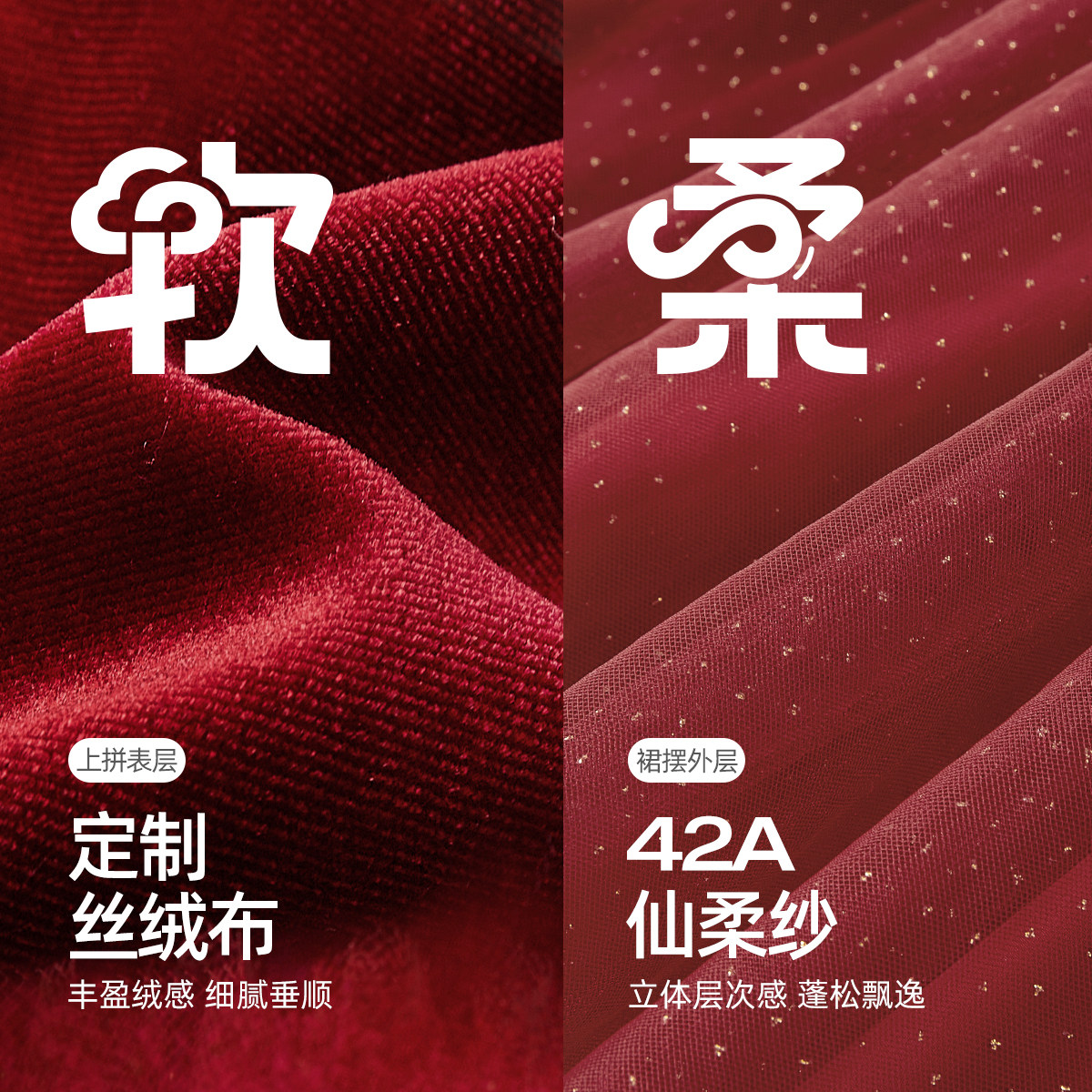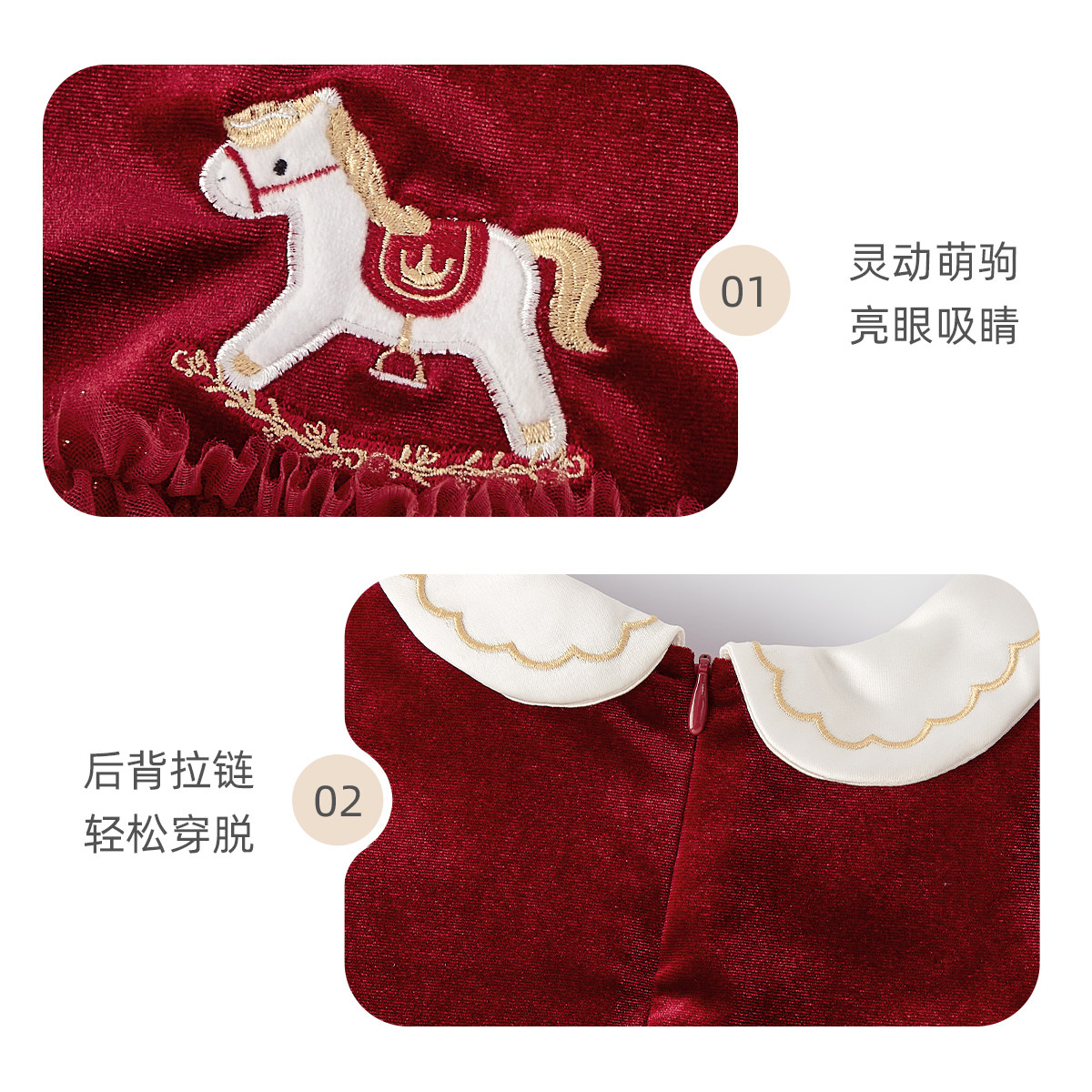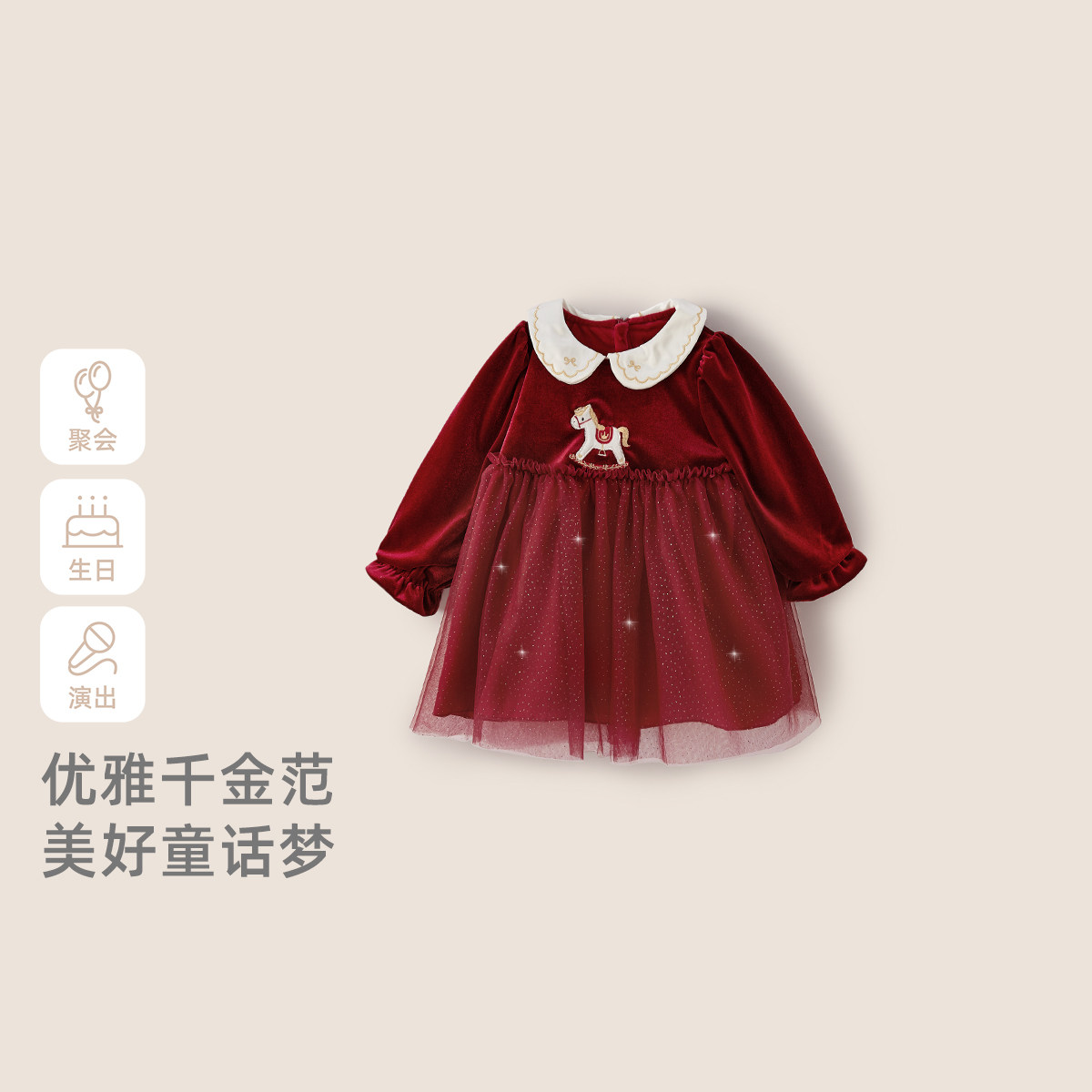女童连衣裙红色公主裙秋冬宝宝加绒网纱裙小女孩春装洋气儿童裙子