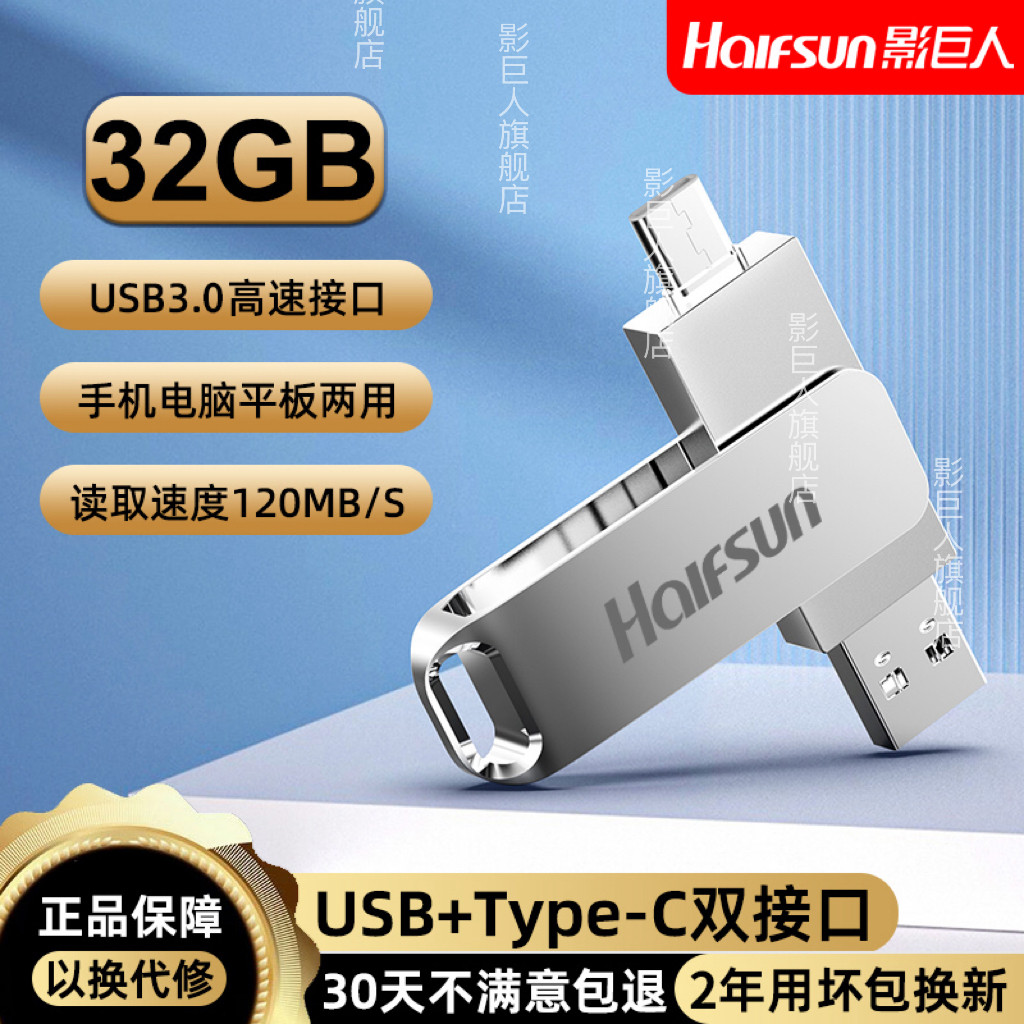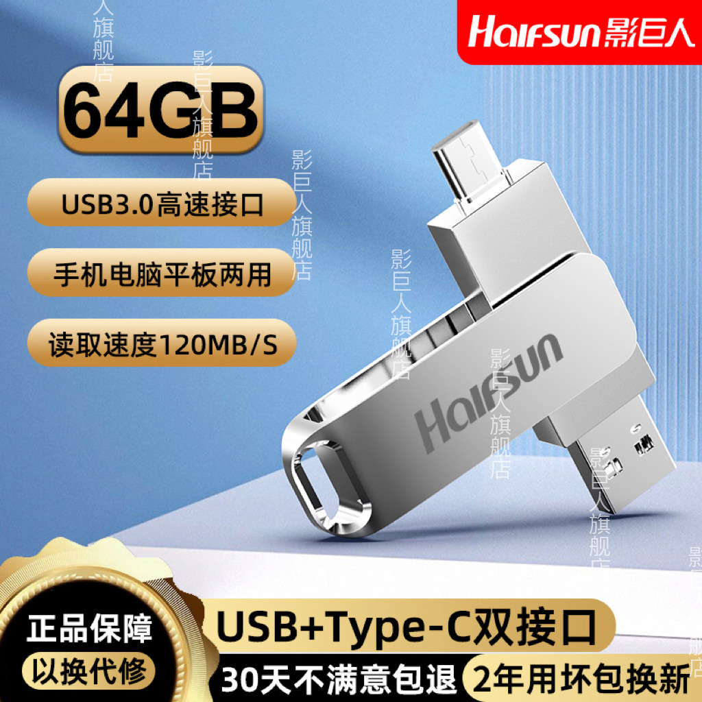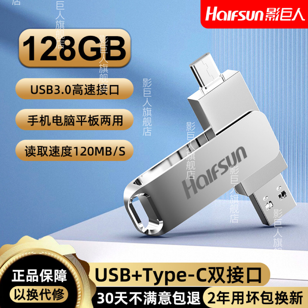 影巨人u盘128g大容量64g金属优盘32g手机电脑两用办公车载通用款
