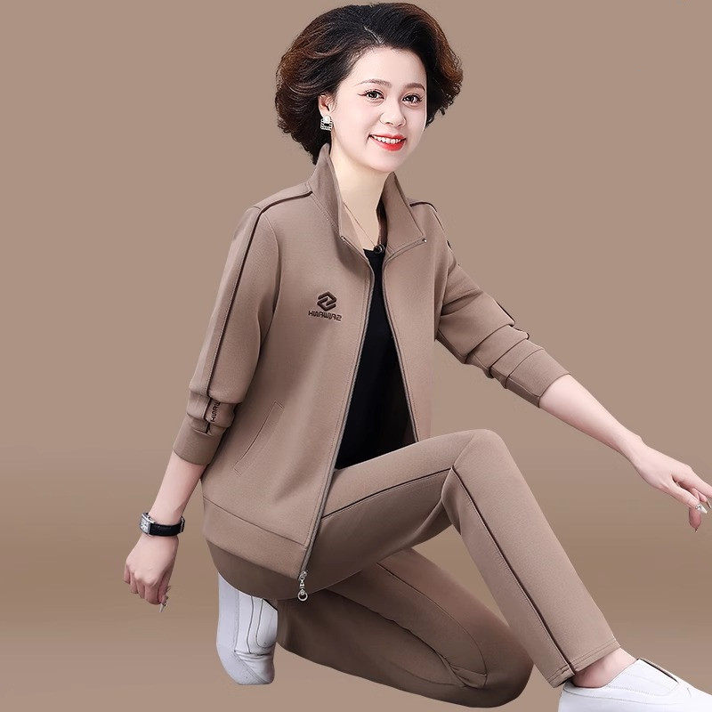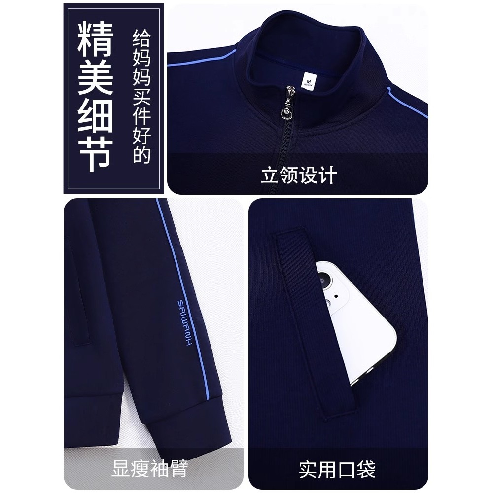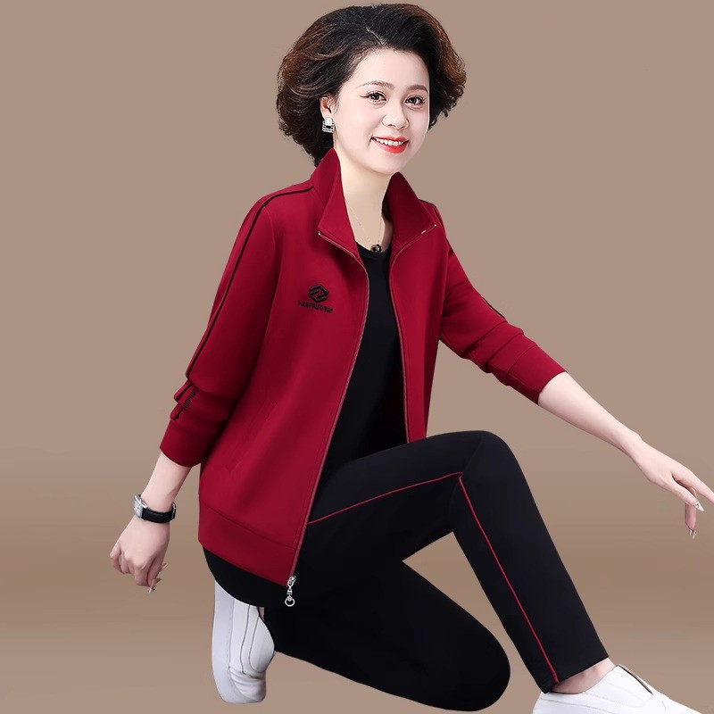 2025春秋运动服套装女时尚立领长袖外套休闲跑步中年妈妈装三件套