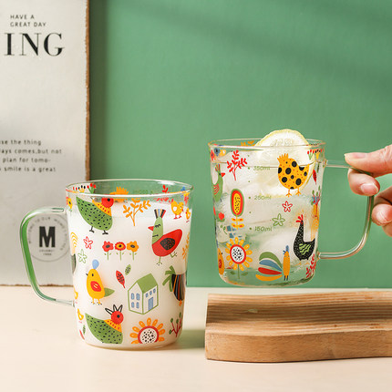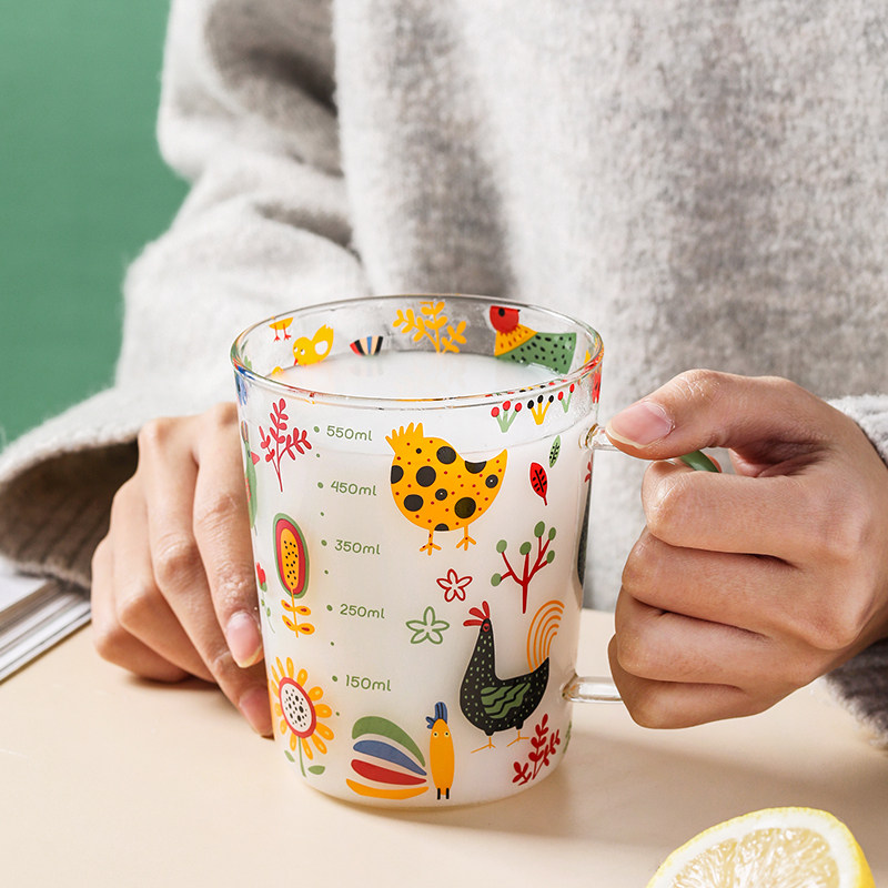 西比尔个性玻璃杯早餐杯大容量耐高温带刻度牛奶杯家用开水适用