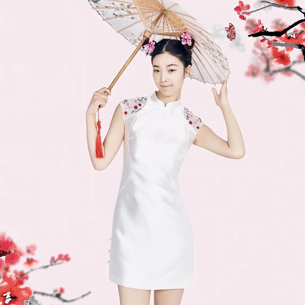 裂帛新衣记中式立领短袖旗袍民族风刺绣绣花旗袍连衣裙