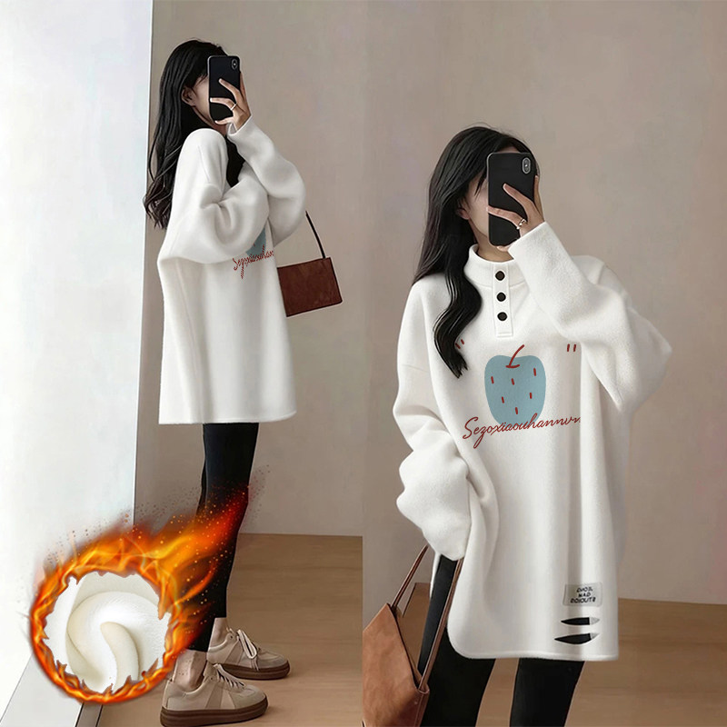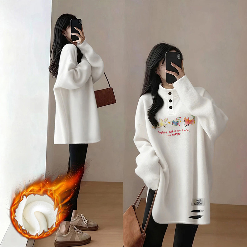 加绒白色打底衫女内搭胖mm大码女装慵懒风中长款上衣女遮屁股洋气