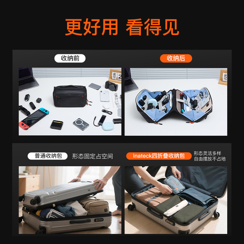 inateck四折叠火山收纳包数码收纳switch2数据线大疆pocket3充电宝充电器耳机收纳袋通勤旅行