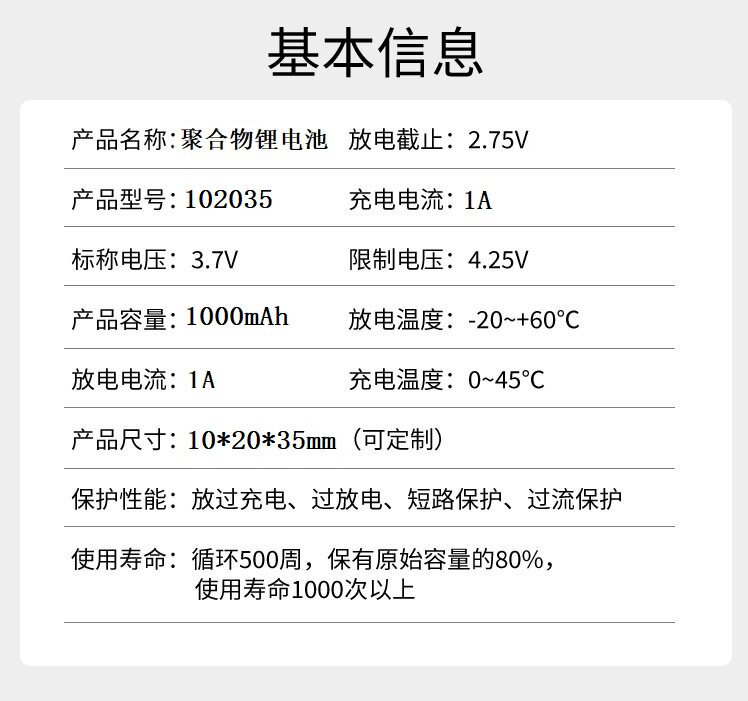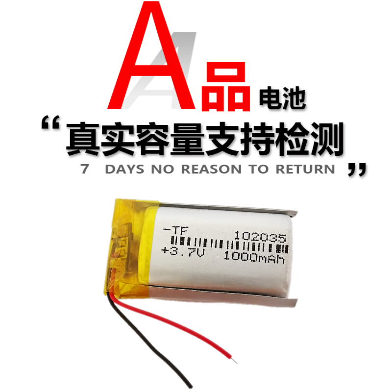 102035聚合物锂电池3.7V灯具VR眼镜探测录音笔蓝牙1000毫安大容量