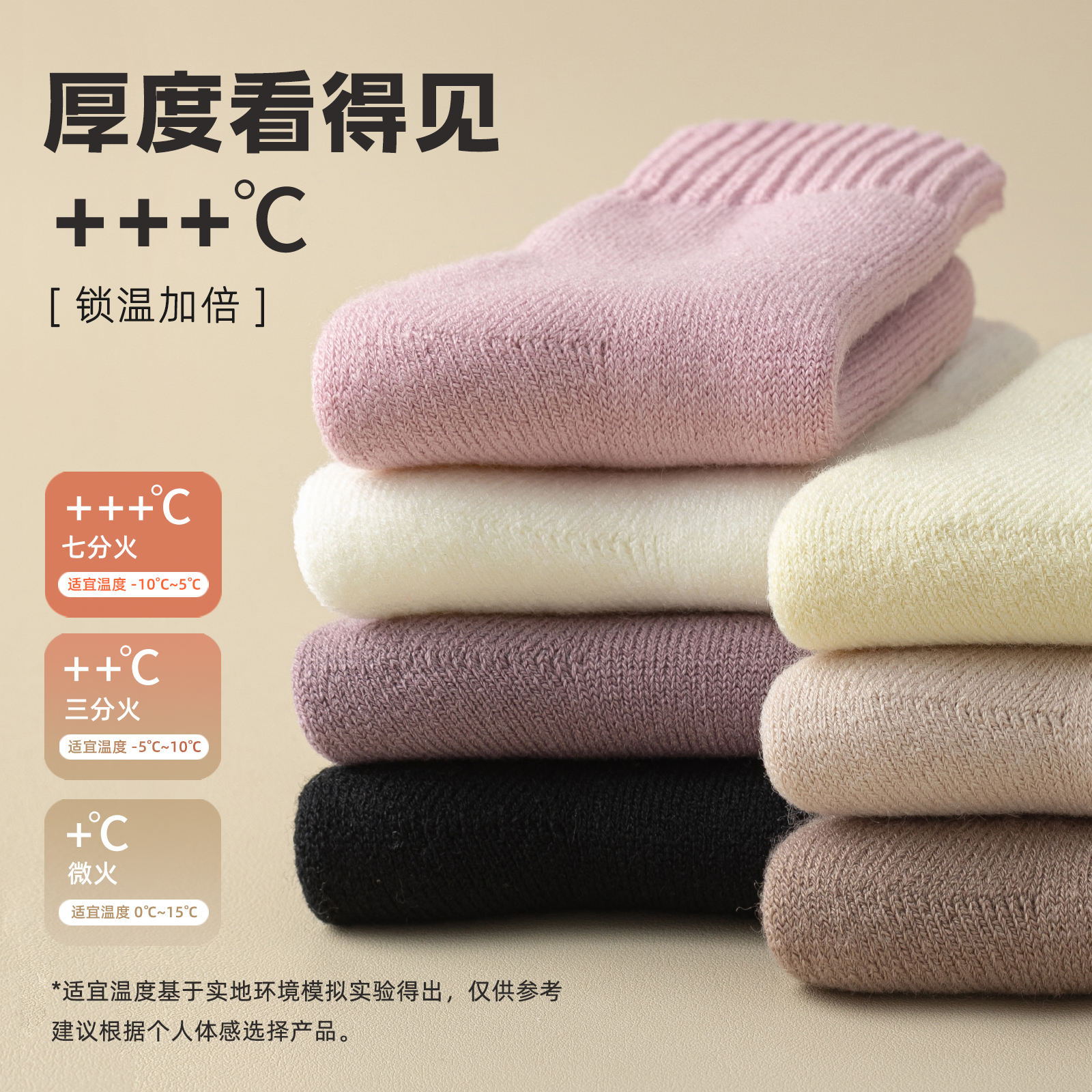 羊绒加绒加厚袜子女款秋季中筒袜保暖羊毛袜睡眠袜冬天雪地袜长袜