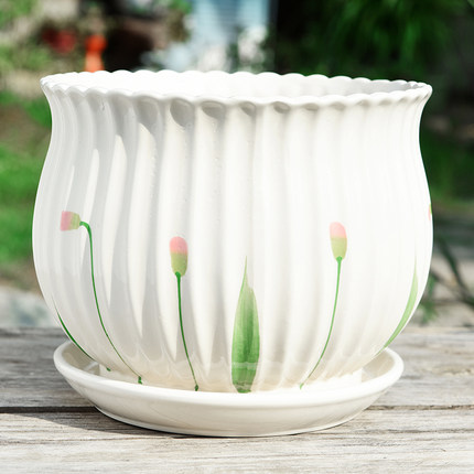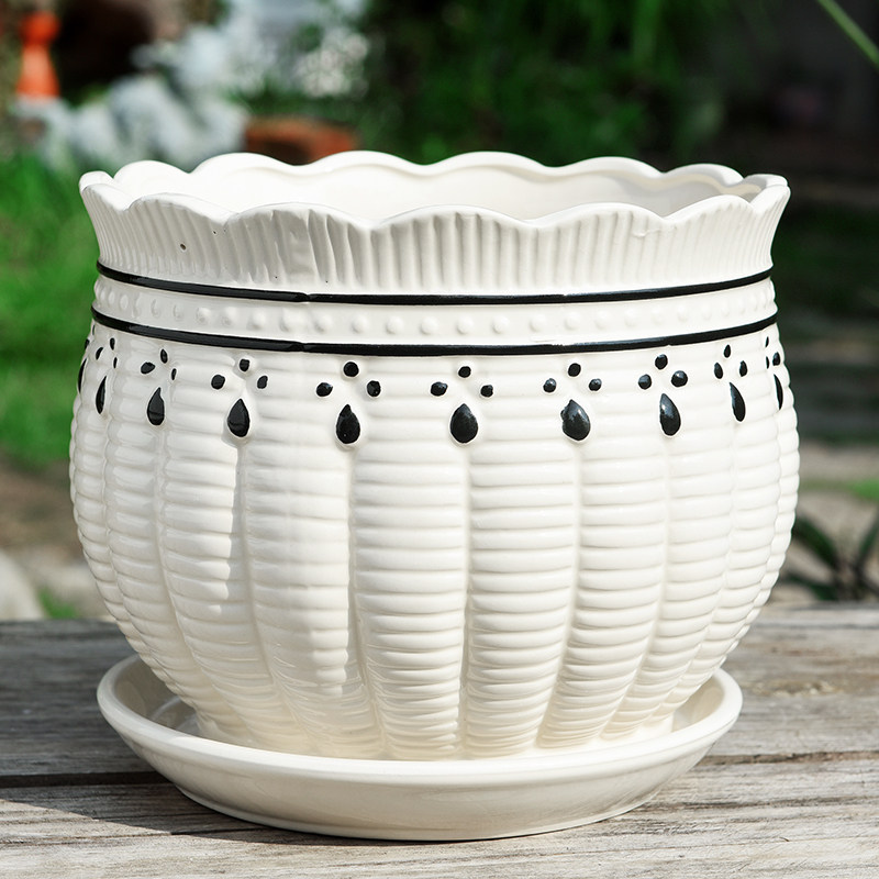 花盆陶瓷特价家用清仓带托盘大号特大号创意个性简约绿萝多肉花盆