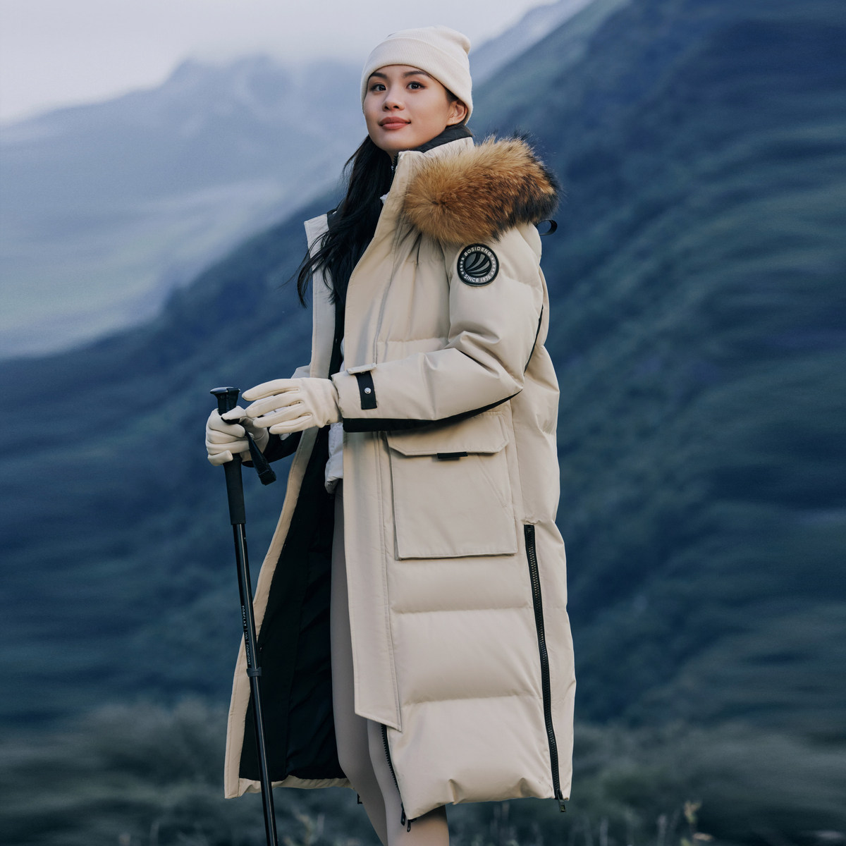 波司登明星同款女加厚过膝长款情侣款大毛领羽绒服工装极寒鹅绒服