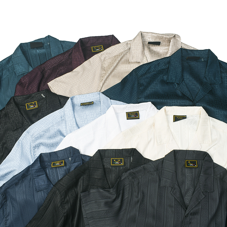 老钱风美式复古舒适肌理古巴领衬衫多色休闲宽松薄款提花短袖衬衣