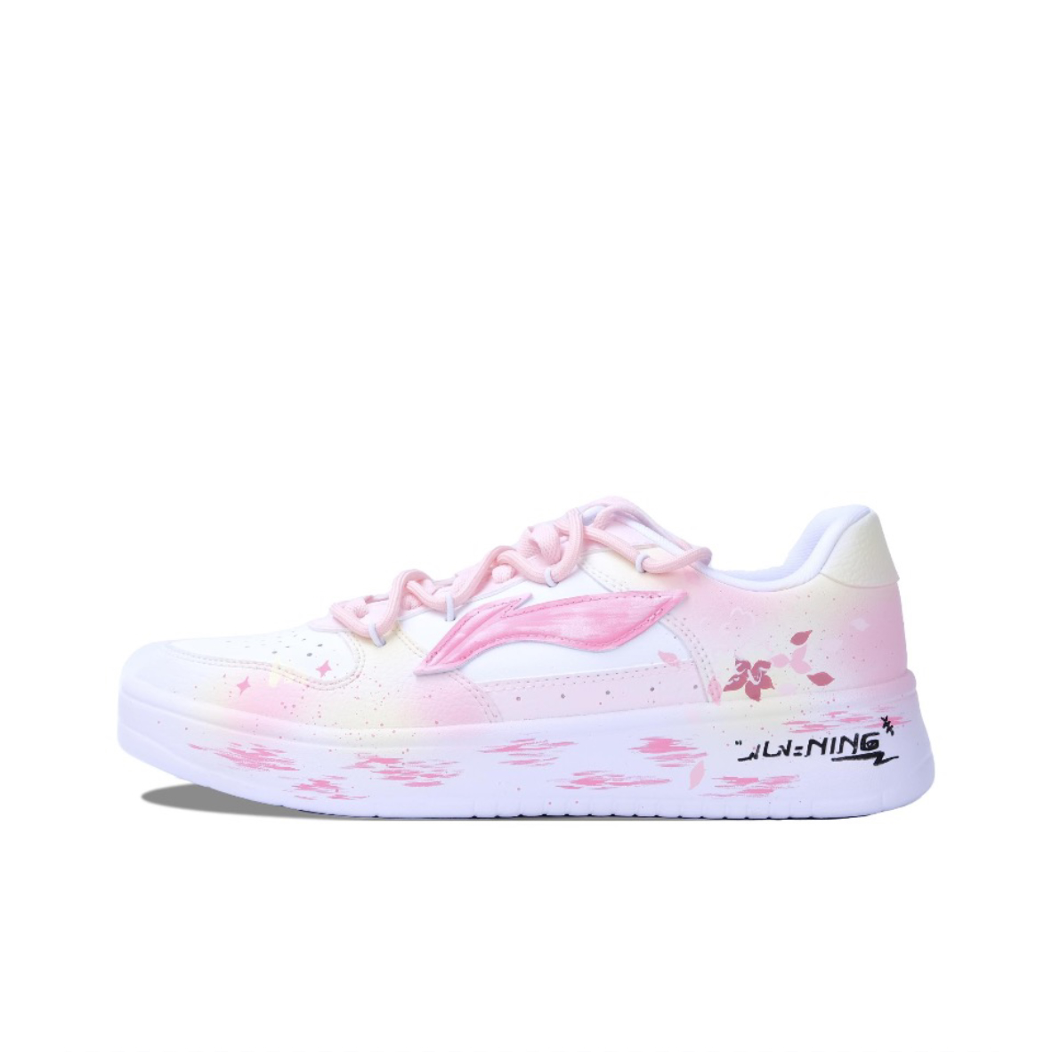 西瓜球鞋定制 LiNing李宁 浮舟江浸月桃花影落简约百搭白黄粉板鞋