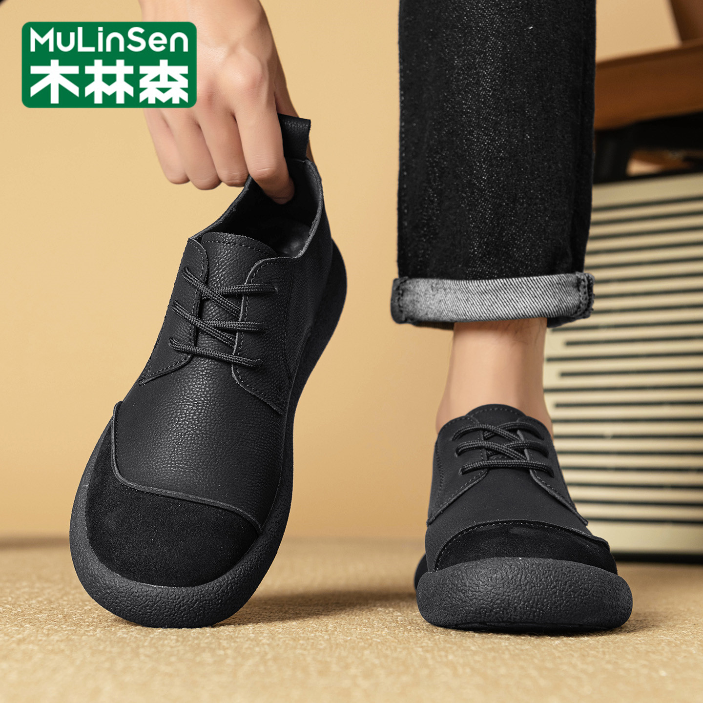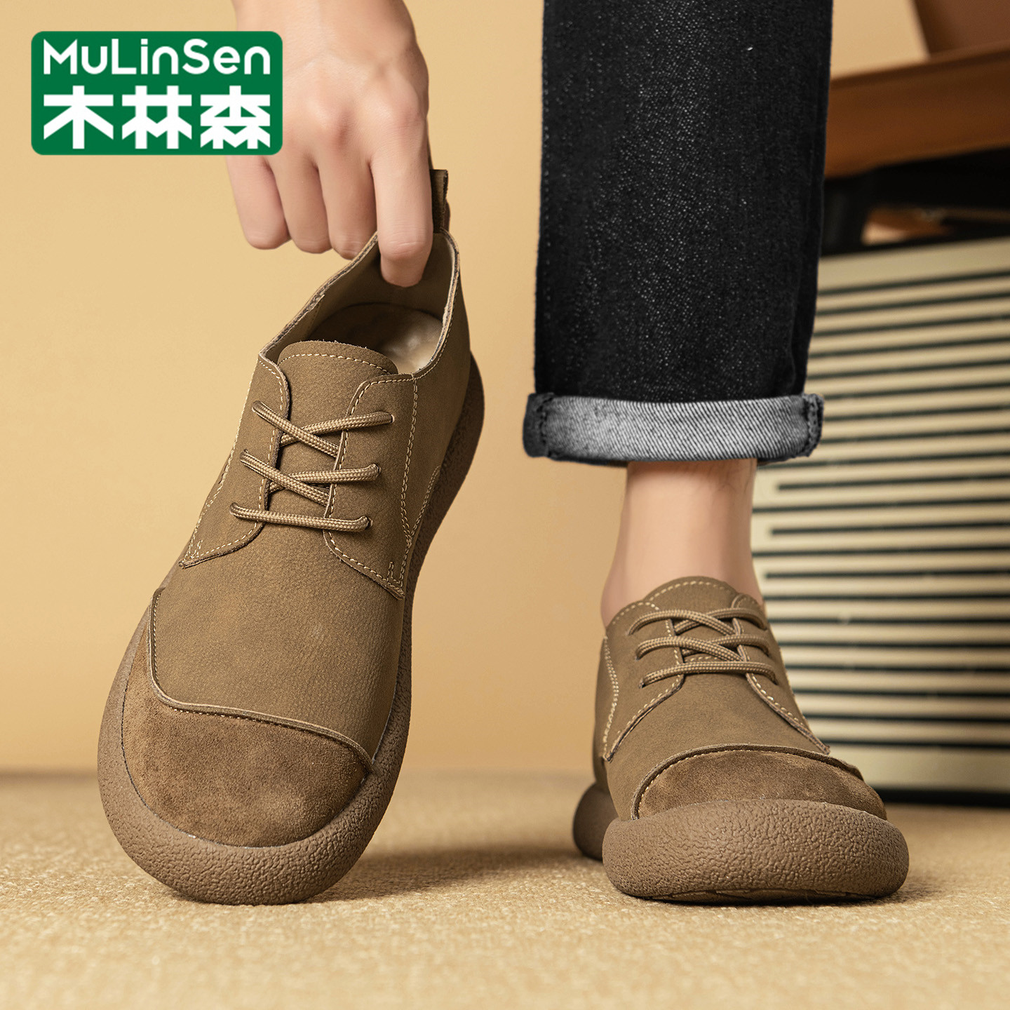 木林森男鞋冬季复古英伦风商务休闲通勤爸爸软底防滑工作上班板鞋