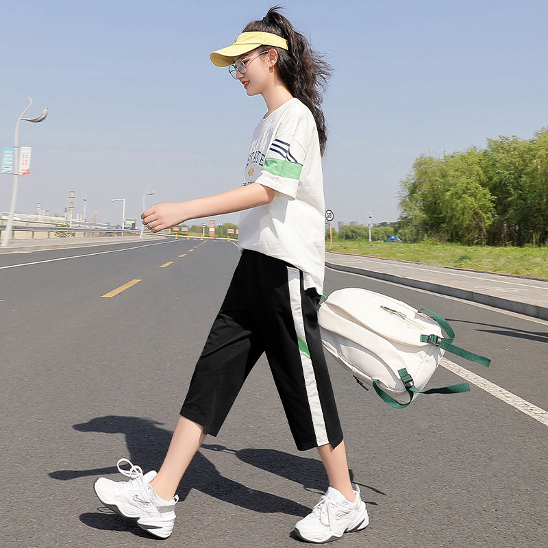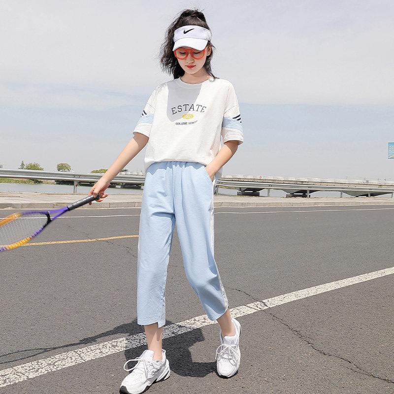 初中生运动套装女夏装中学生新款少女两件套运动装大童学院风休闲