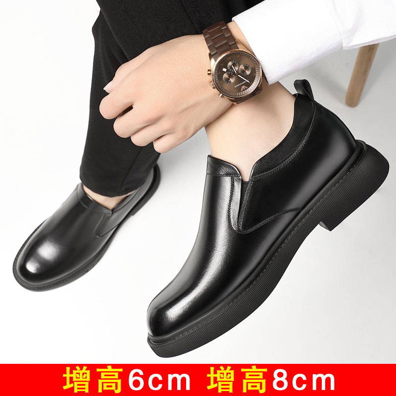 不系带内增高8公分无鞋带大头商务正装男鞋套脚曾高6厘米西装皮鞋