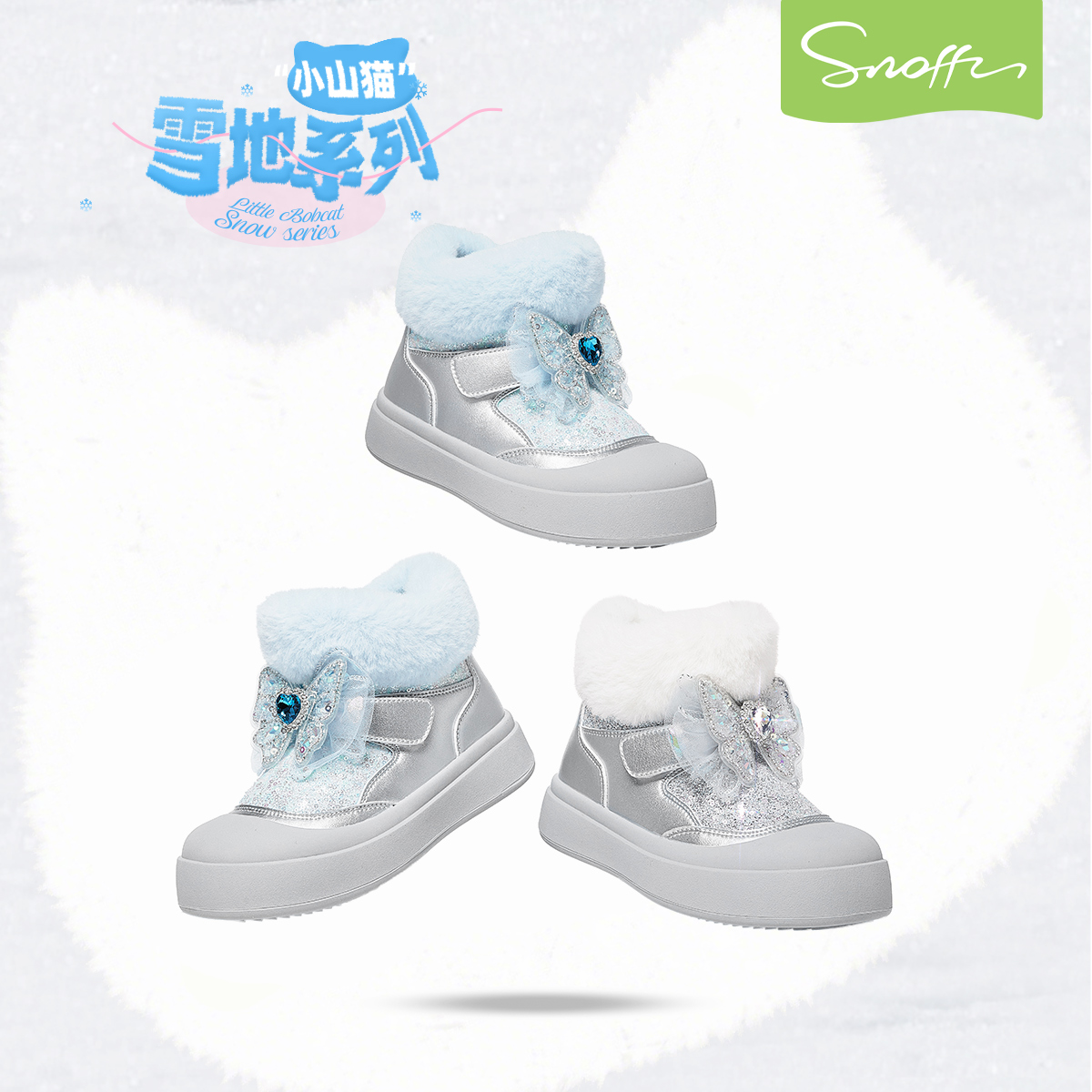 斯纳菲女童雪地靴2025冬季新款小女孩水晶公主鞋儿童加绒高帮棉靴