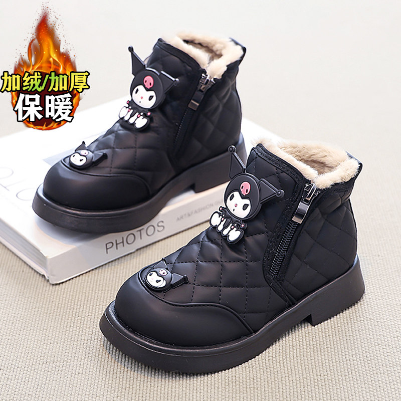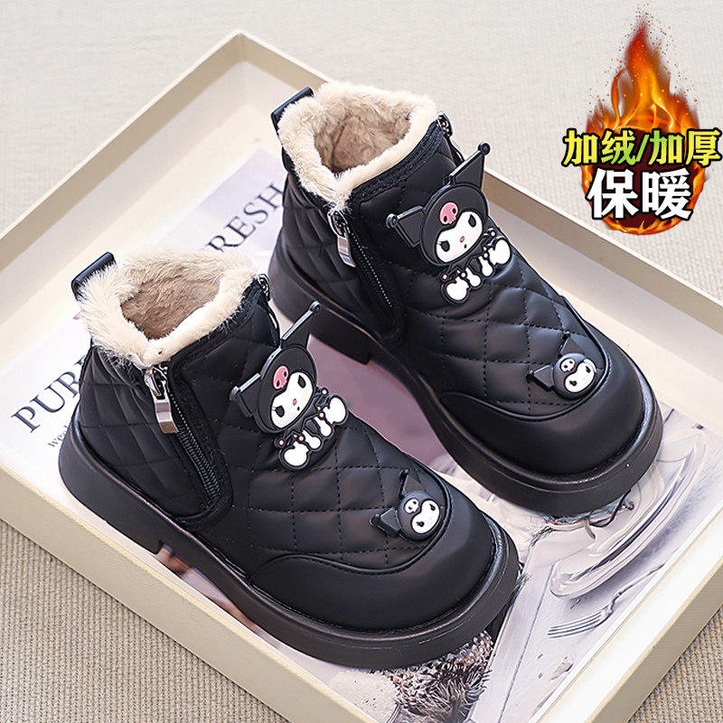 小黄鸭儿童雪地靴女童2025新款冬季女孩黑色加绒大棉鞋库洛米棉靴