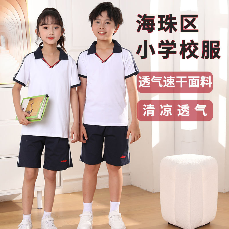 广州海珠区小学生校服夏季短袖短裤套装男女童运动服班服夏装校服