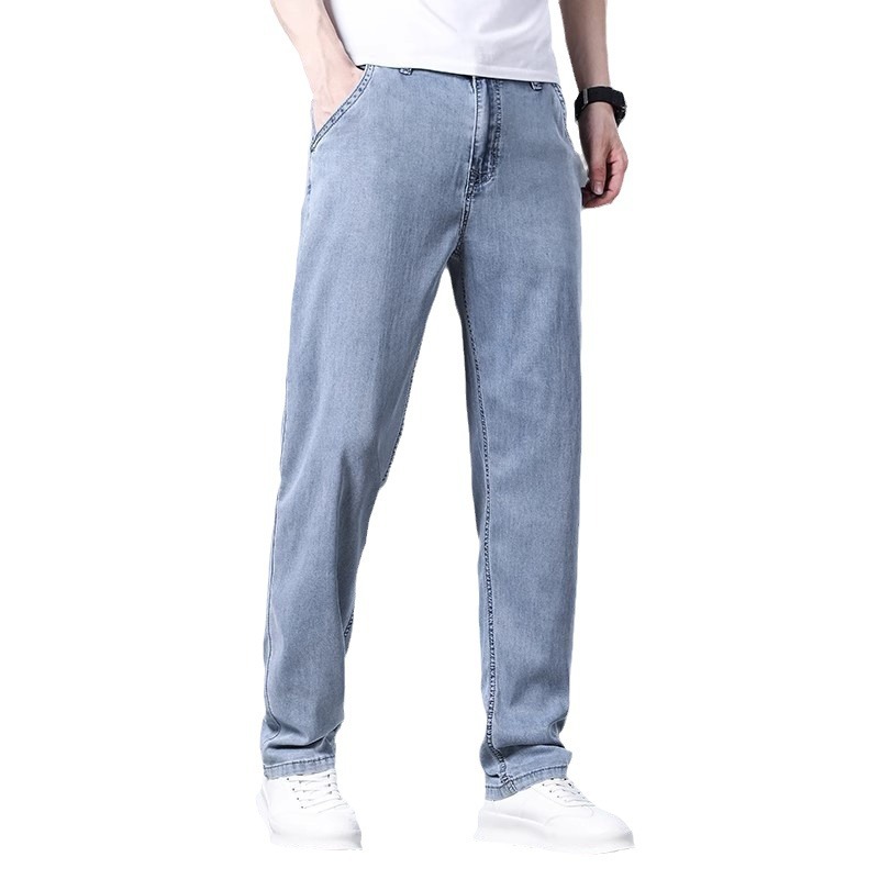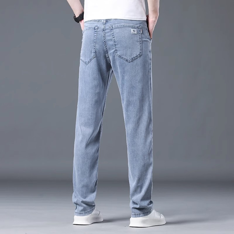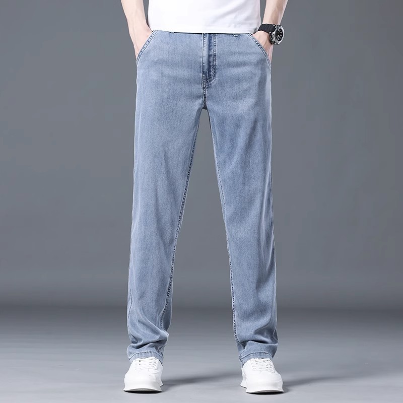 新款高端天丝牛仔裤男士夏季薄款宽松直筒冰丝软裤子潮牌商务