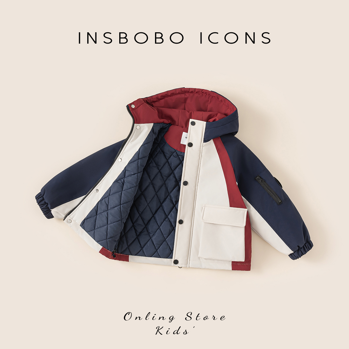 INSbobo童装儿童棉服外套冬季新款女童冲锋衣男童连帽上衣棉袄冬