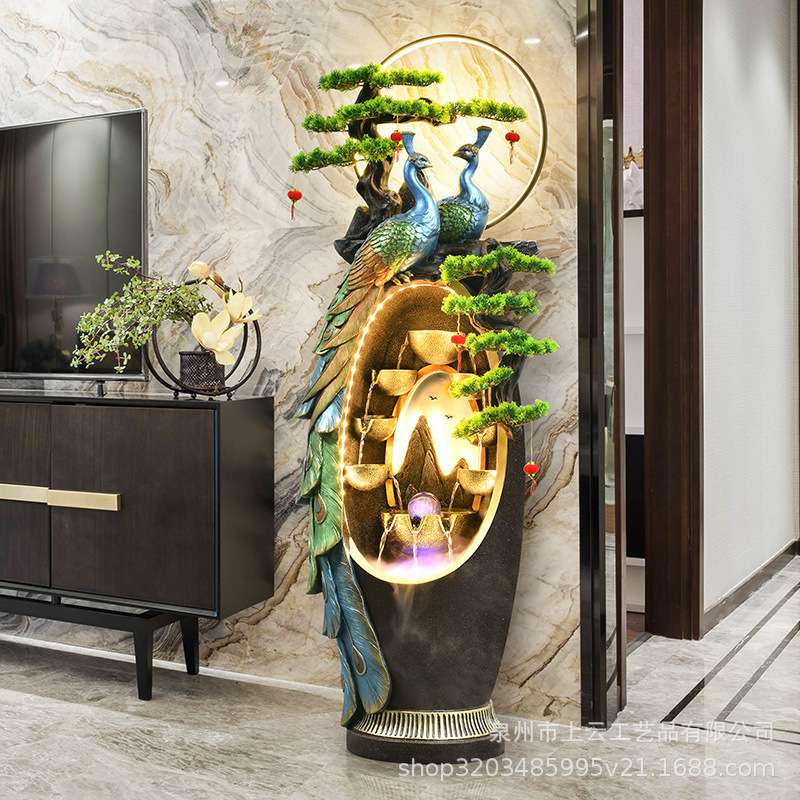 孔雀假山流水喷泉摆件落地客厅办公室风水轮招财高山循环水景装饰
