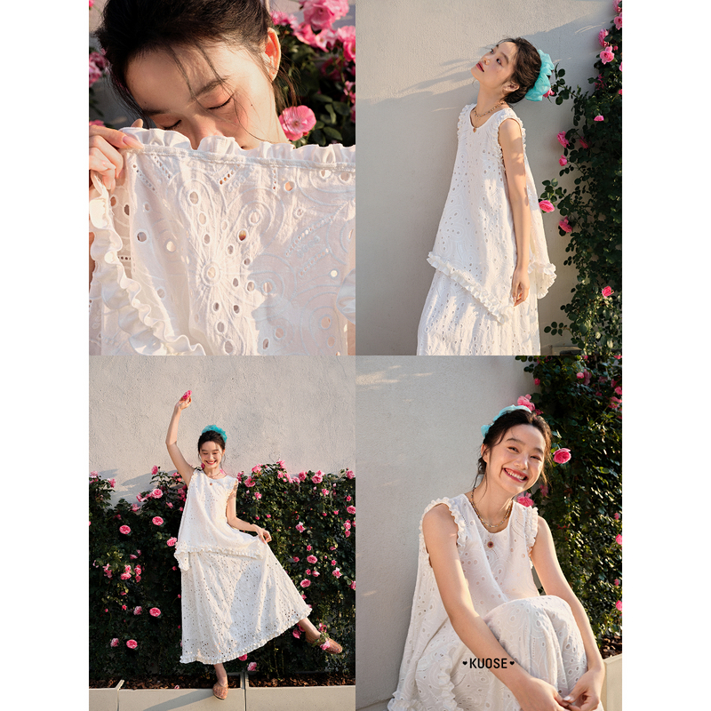 阔色白色背心吊带半身裙两件套装长裙子25夏日穿搭新款女无袖上衣
