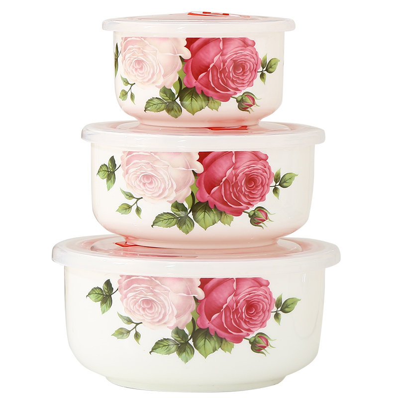 微波炉专用碗套装陶瓷碗带盖大号骨瓷保鲜碗家用加热密封碗三件套