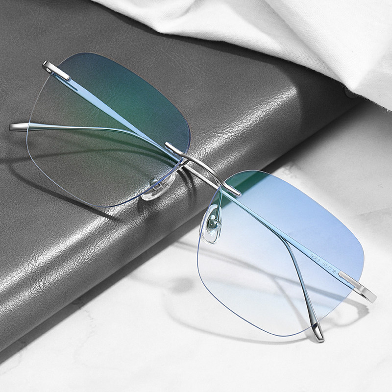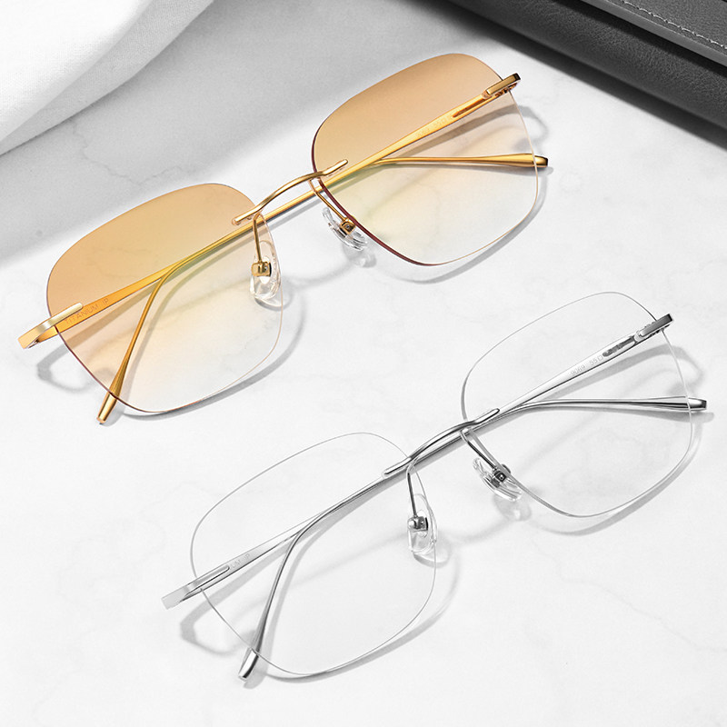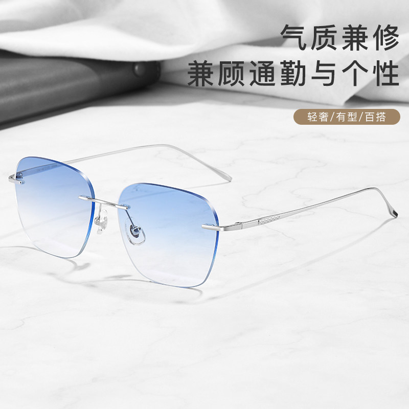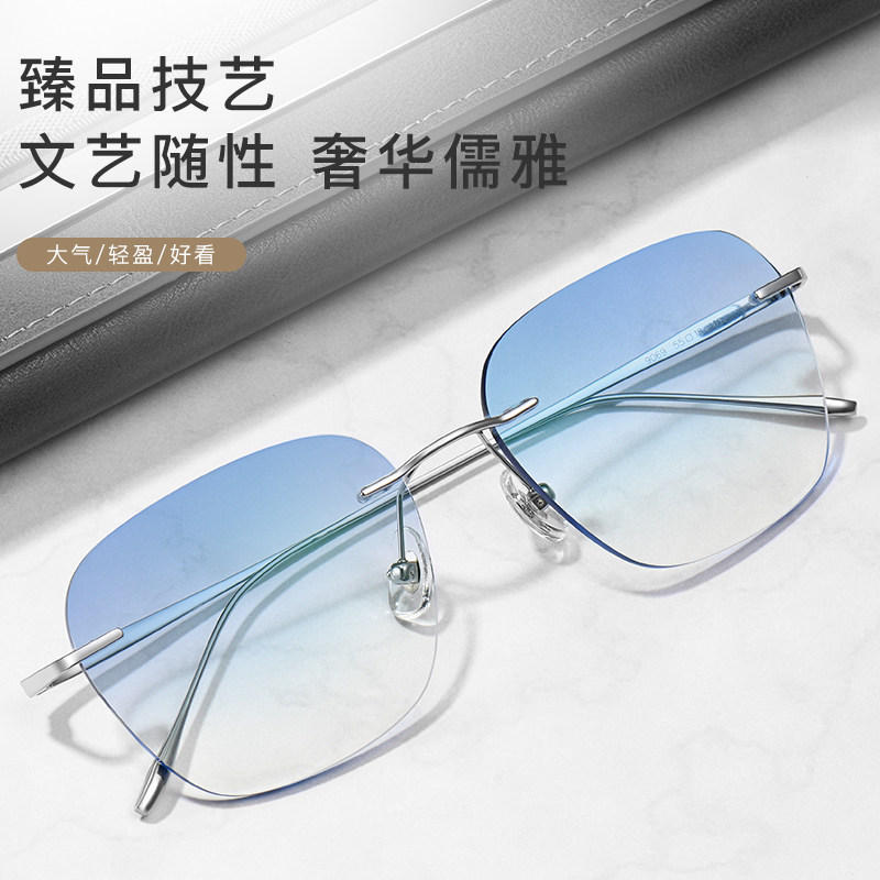 无框纯钛近视眼镜男成品无边框防蓝光变色平光可配有度数时尚眼睛