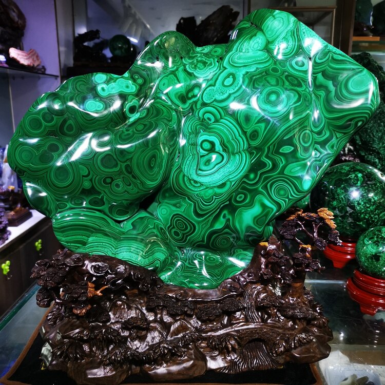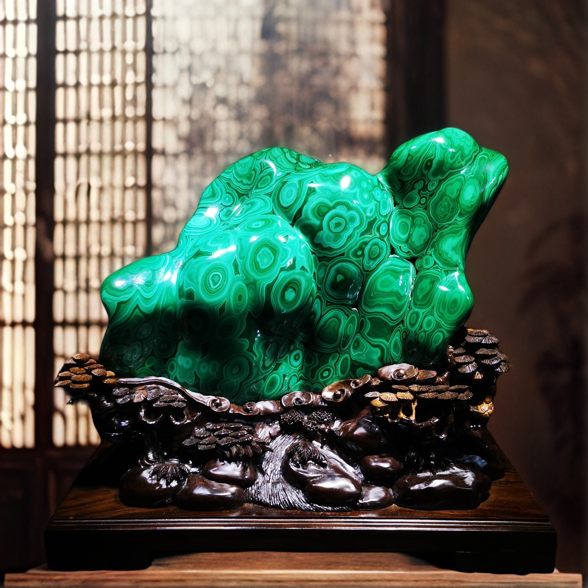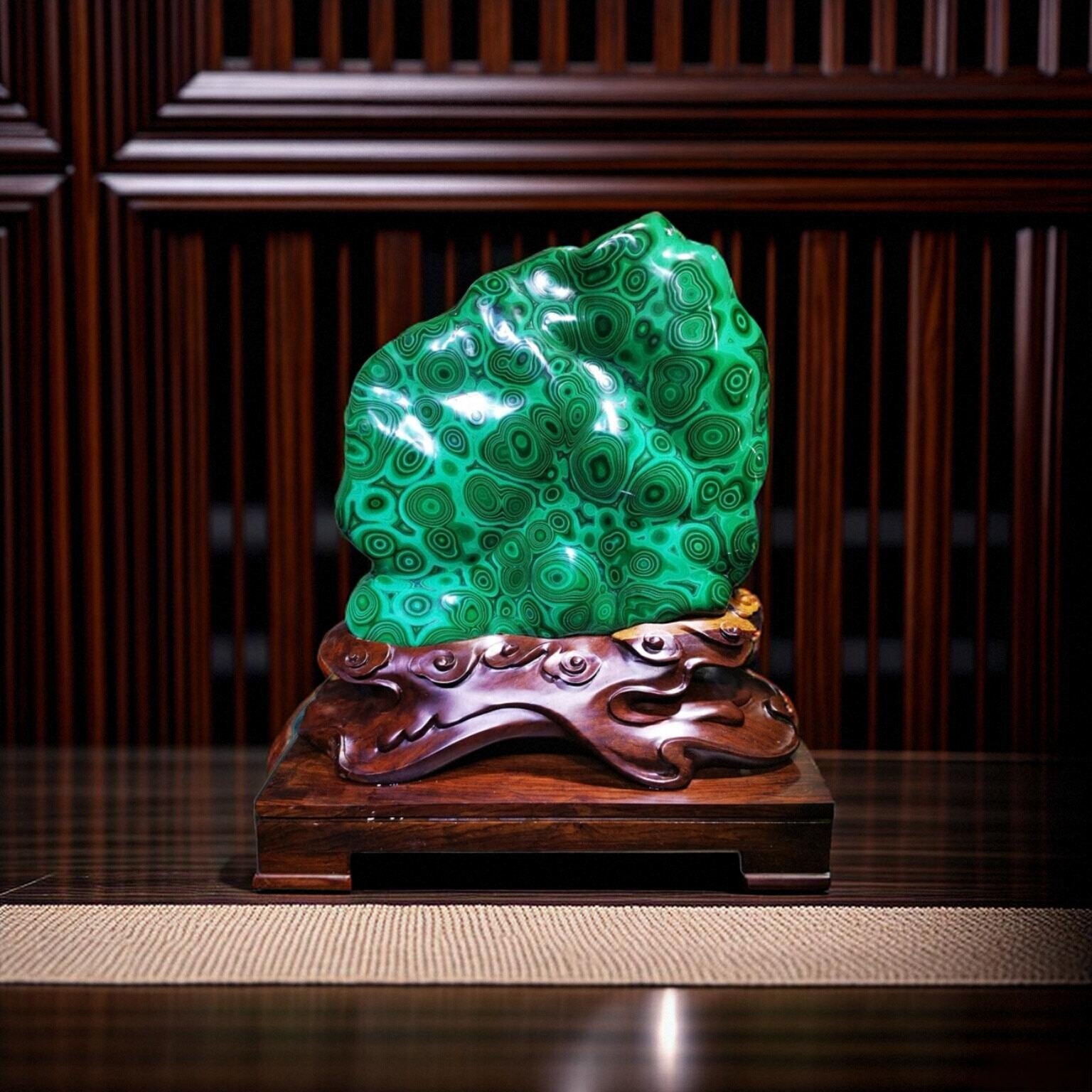 天然孔雀石原石摆件 翡翠蓝宝奇石客厅玄关装饰收藏送礼招财镇宅