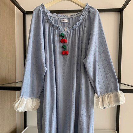 提花棉睡裙女春秋冬季长袖蕾丝边连衣裙新款甜美公主风睡衣家居服